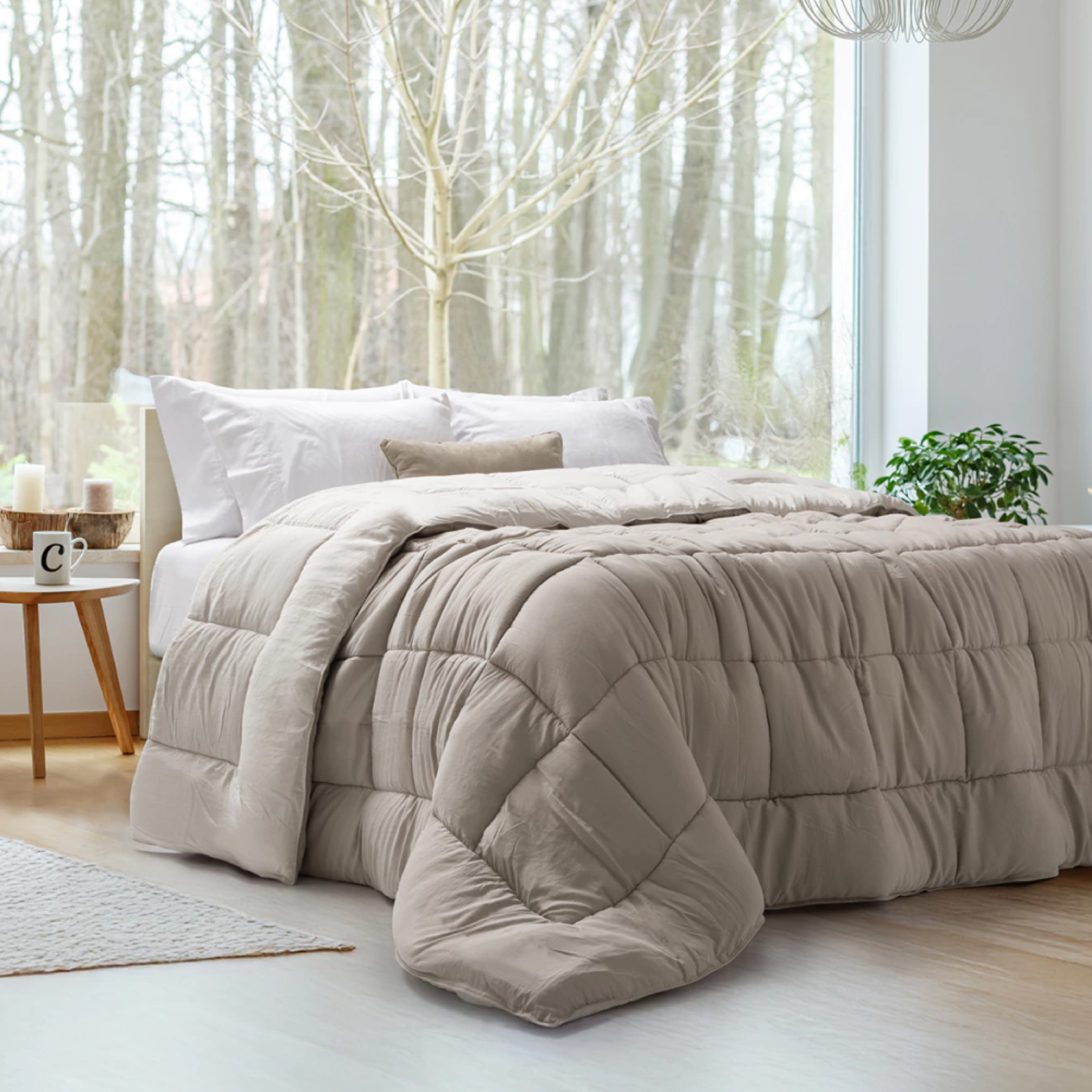 Acolchado símil plumón / Matelaseado / De microfibra prewashed super soft touch / Para colchón de hasta 1.60×2.00mt / Medidas: 2.40×2.40 / Colores lisos.