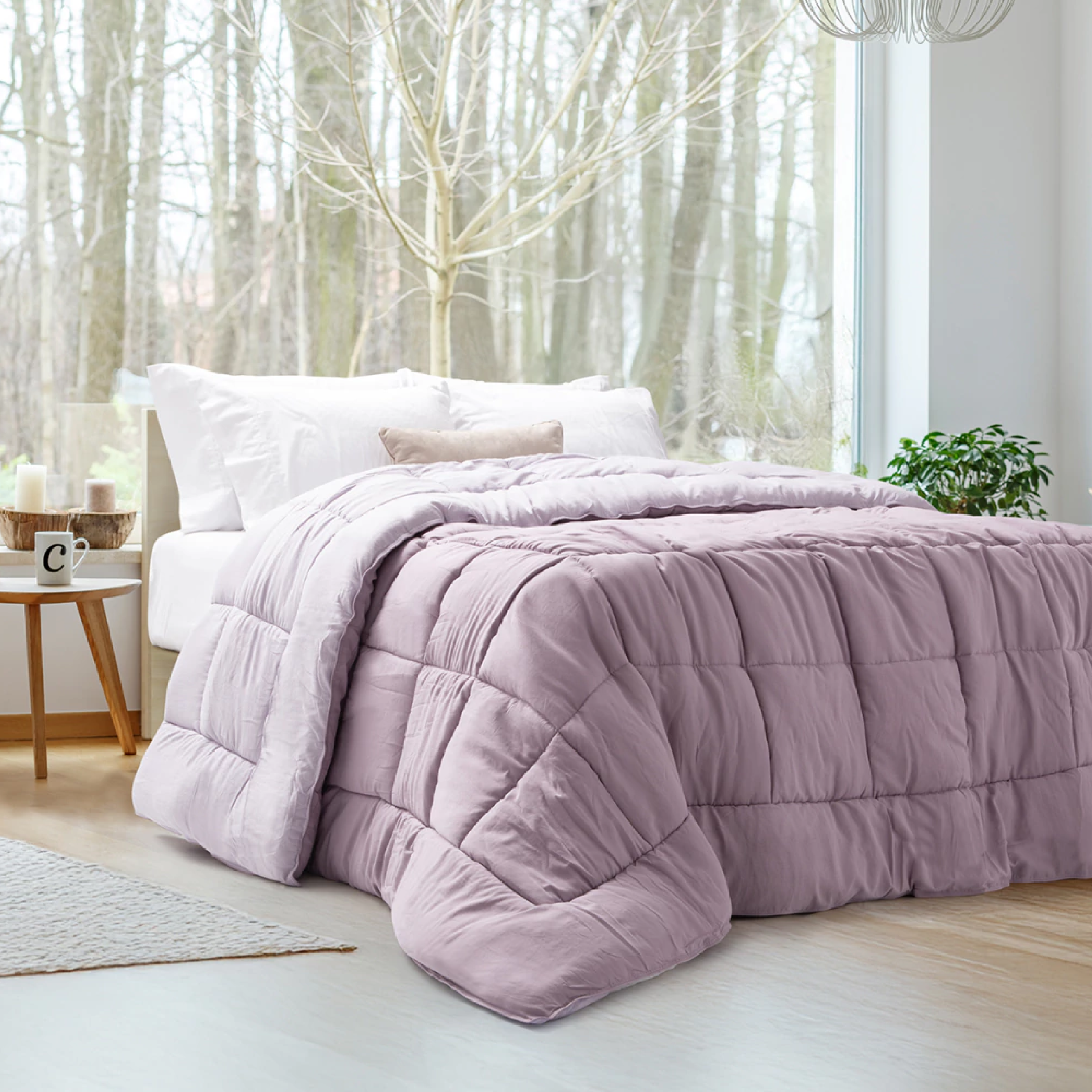 Acolchado símil plumón / Matelaseado / De microfibra prewashed super soft touch / Para colchón de hasta 1.60×2.00mt / Medidas: 2.40×2.40 / Colores lisos.