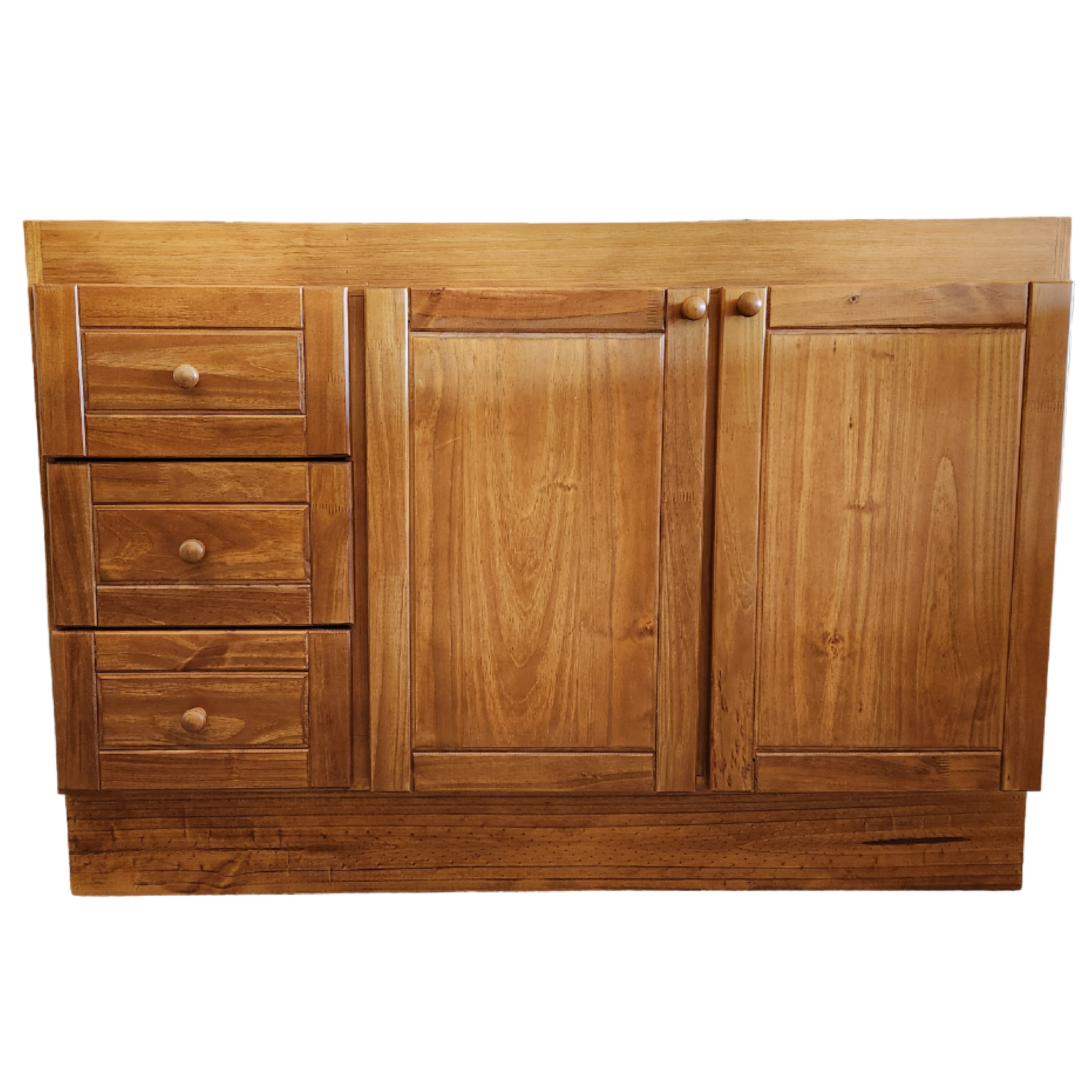 Fabricado en pino misionero / 2 puertas / Cajonera izquierda con 3 cajones / Lustre caramelo / Medida: 1.20 mts.