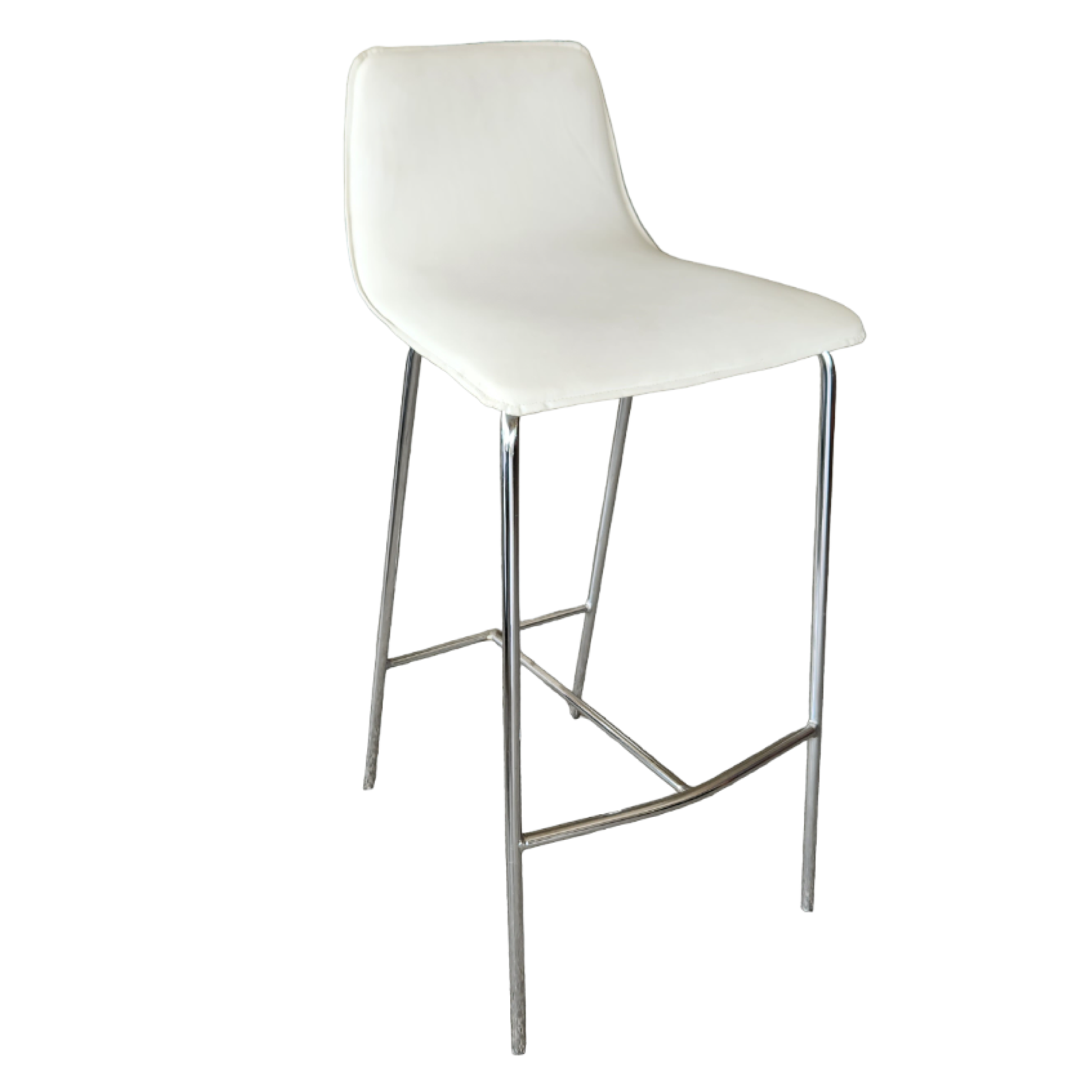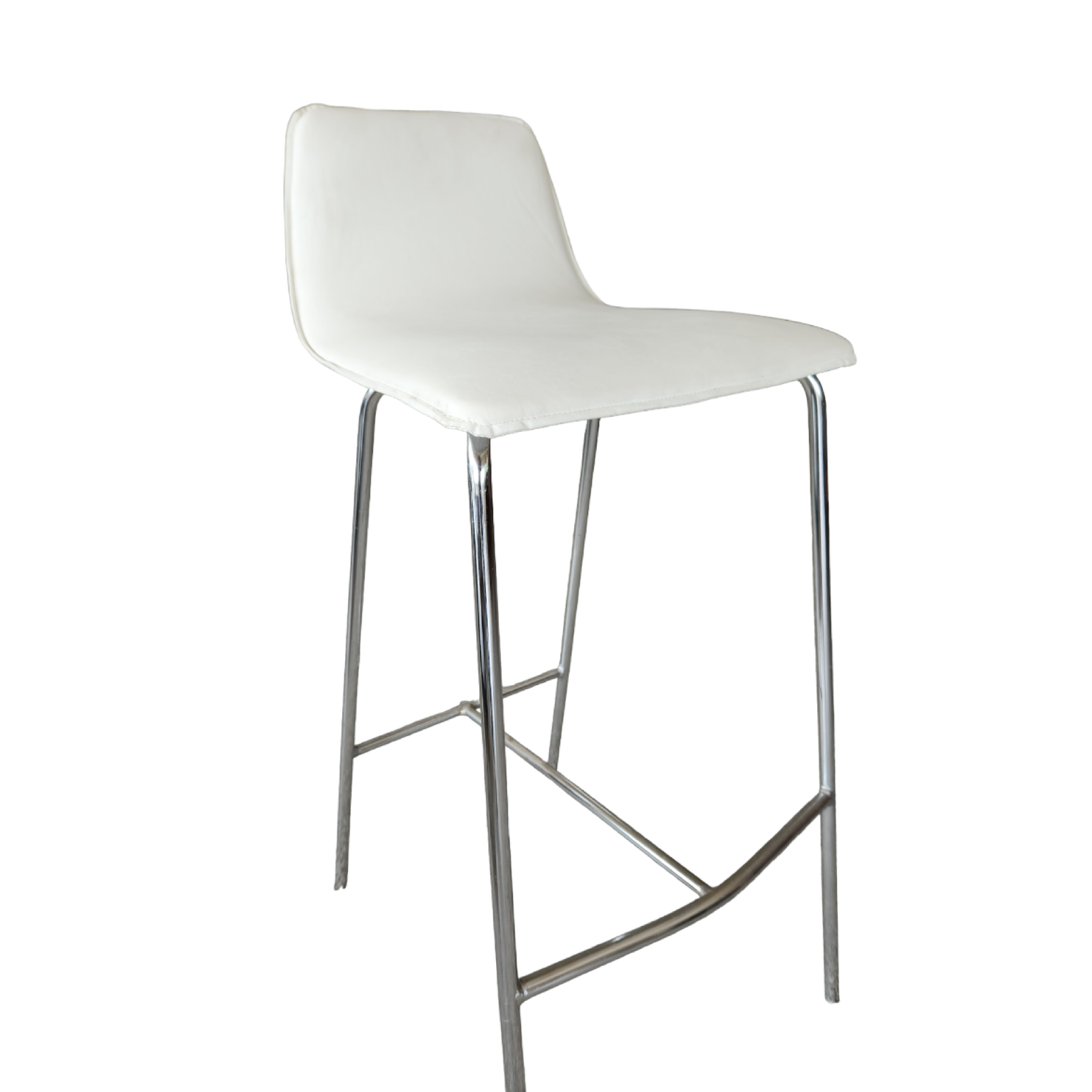 Banqueta alta / Estructura cromada / Asiento y respaldo tapizado.