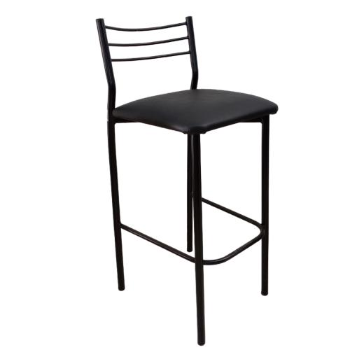 Estructura en caño redondo de 1 pulgada / Asiento tapizado en ecocuero / Con respaldo / Apoyapiés / Caño negro.