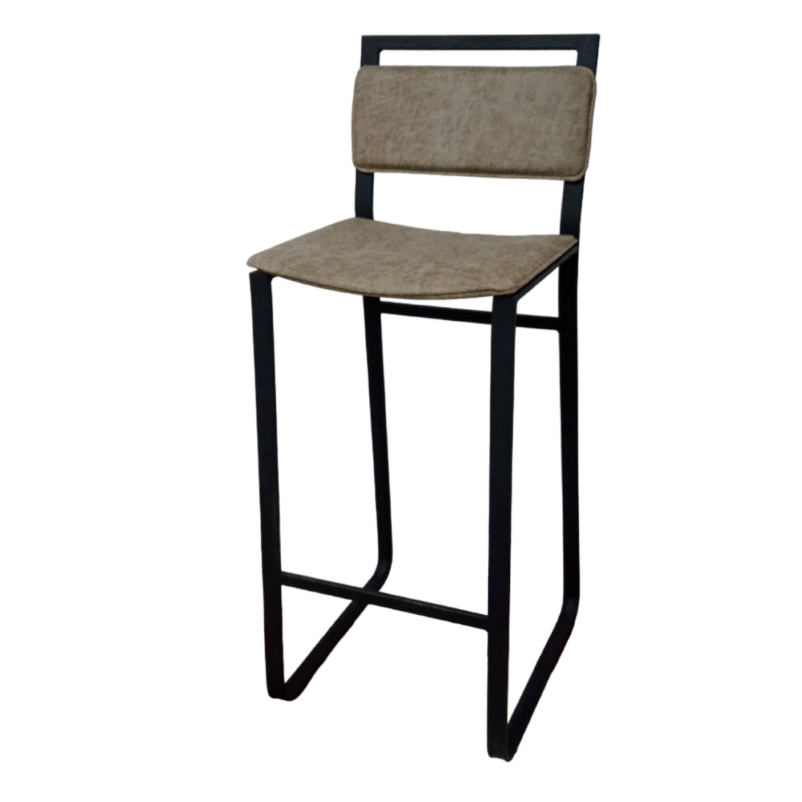 Banqueta alta / Estructura en caño cuadrado con acabado en pintura microtexturada negra / Asiento y respaldo tapizado.