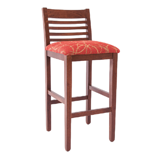 Fabricada en madera paraiso / Lustre cedro / Asiento tapizado ecocuero.