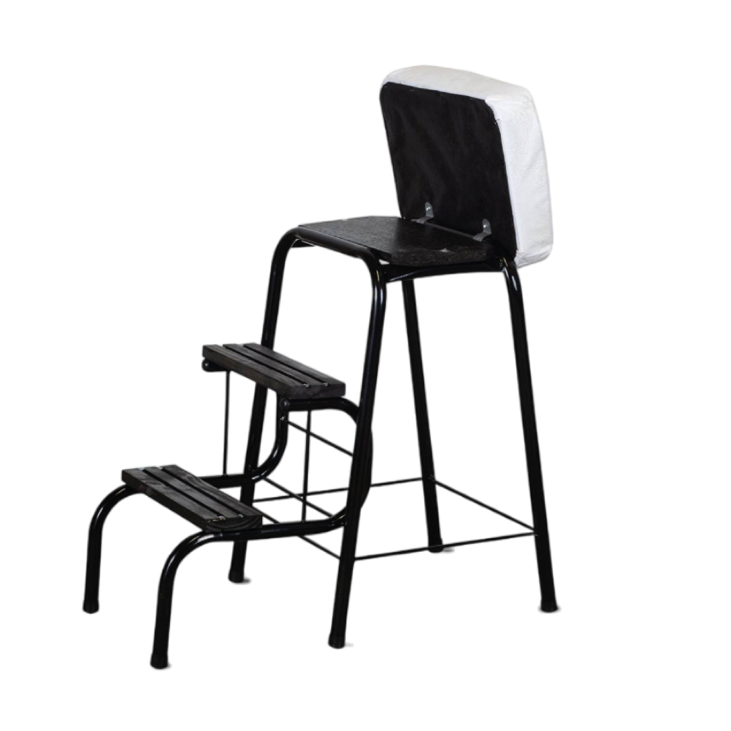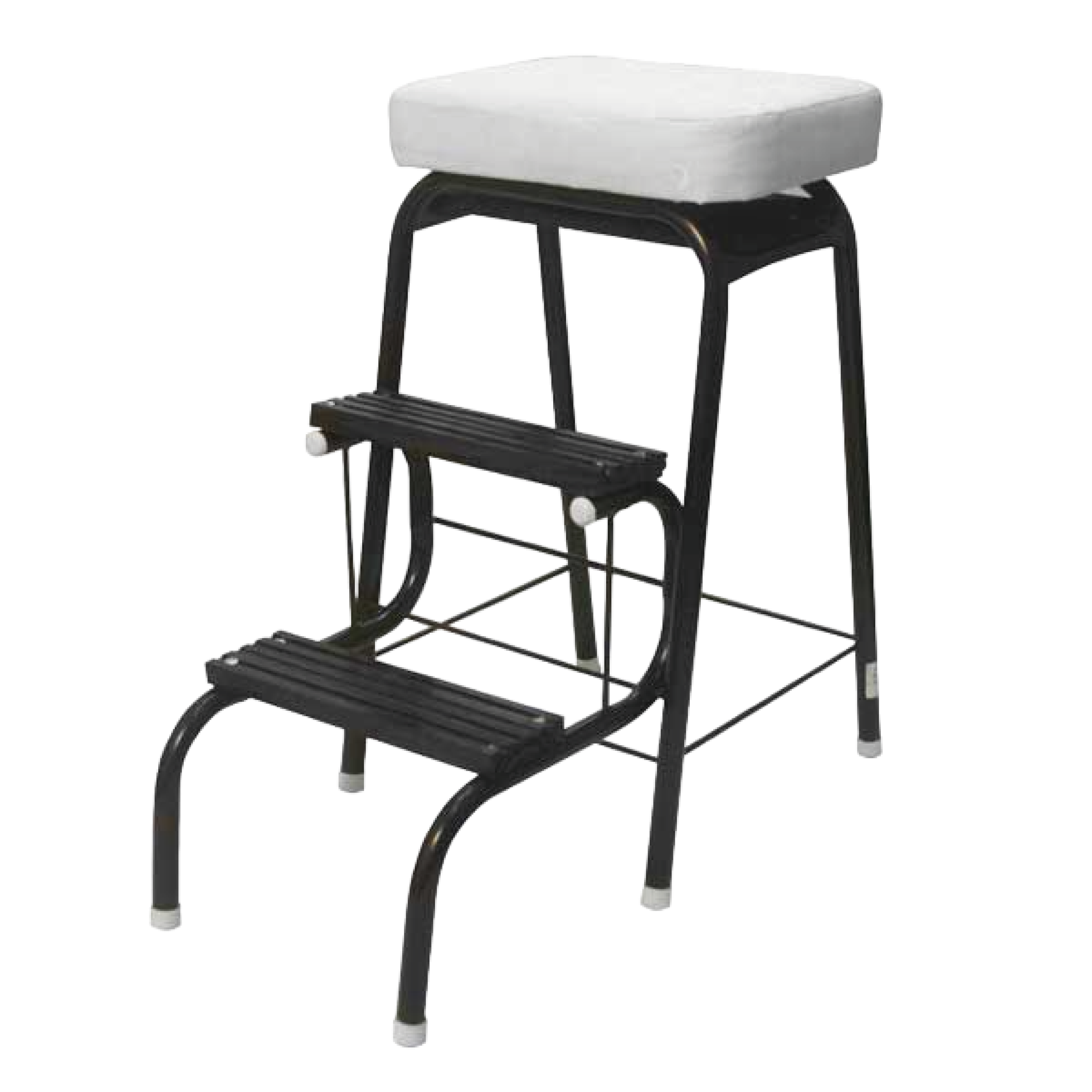Estructura de caño / 3 escalones plegables / Asiento tapizado eco cuero.