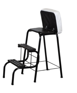 Estructura de caño / 3 escalones plegables / Asiento tapizado eco cuero.