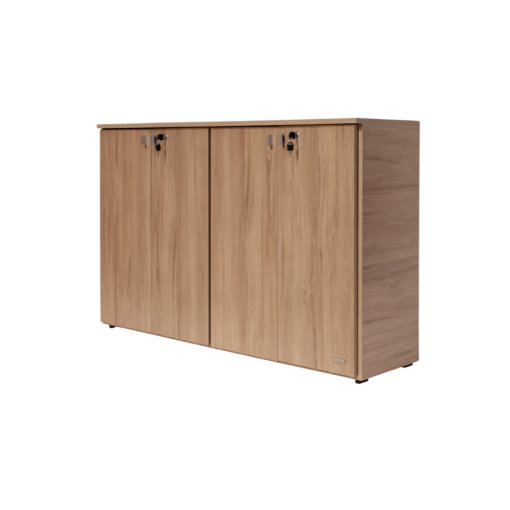 Fabricada en melamina color acacia / 4 puertas de abrir con cerradura / Estantes regulables / Medidas: 1.48 de ancho x 0.35 de profundidad x 0.89 de alto.
