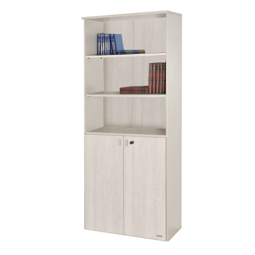 Fabricada en melamina color gris andino / 2 puertas de abrir bajas con cerradura / Estantes regulables / Medidas: 0.75 de ancho x 0.35 de profundidad x 1.88 de alto.