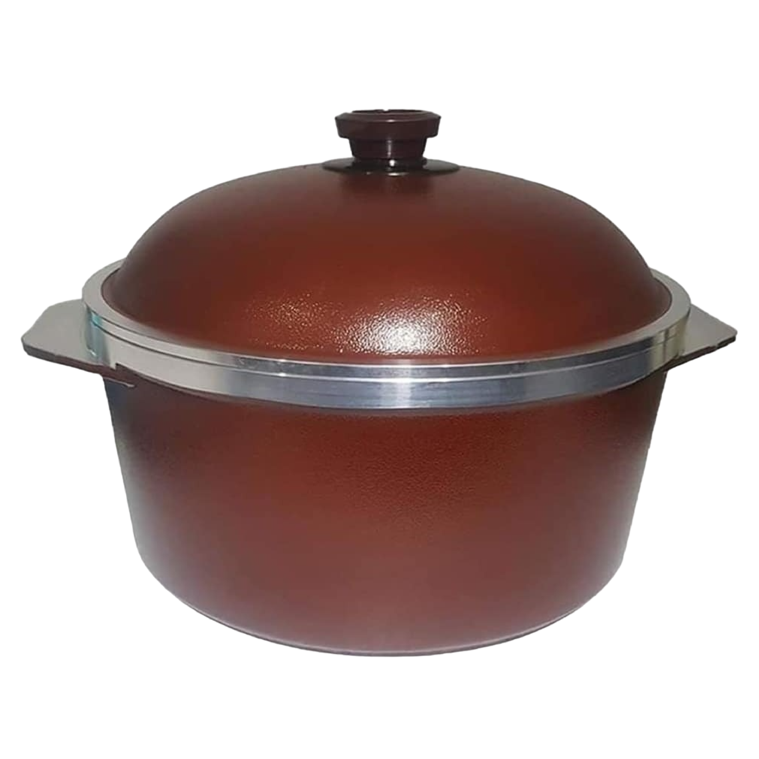 Cacerola con asas de material de aluminio con antiadherente / Con tapa / Revestida exteriormente por esmalte Epoxi poliester / Facil limpieza, inalterable al fuego / Capacidad: 7,00 Lts. / Medida: 28 de diametro y 13 cm. de alto.