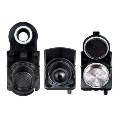 Cafetera con porta cápsula adaptable: café molido, Dolce Gusto, Nespresso y almohadilla Pod / 1500W / Tanque de agua de 0.7Lts / Presión 15bar / Disponible en rojo y negro.
