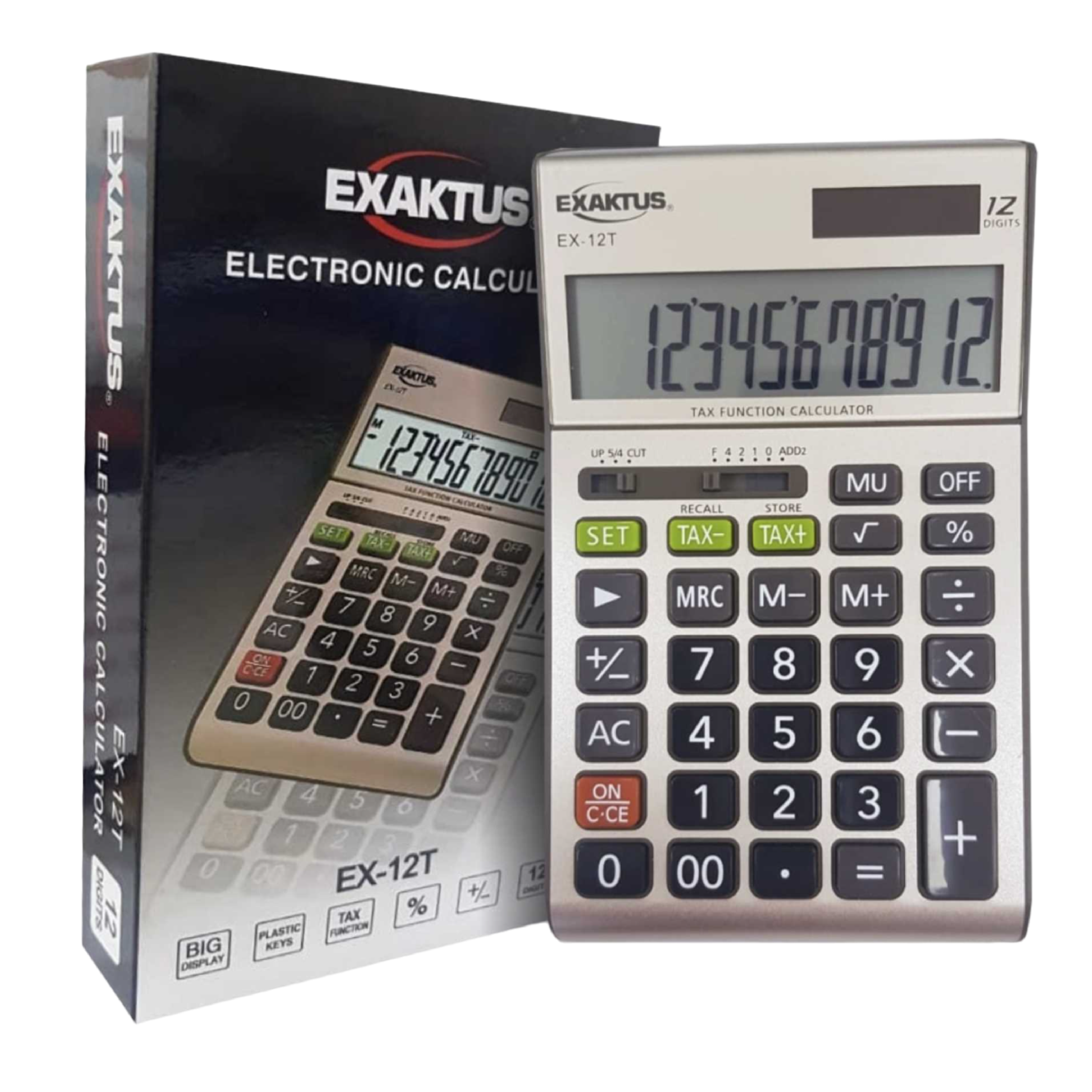 De mesa / A batería/solar / 12 dígitos / Teclas plásticas / Cobertura de metal / Visor elevado.