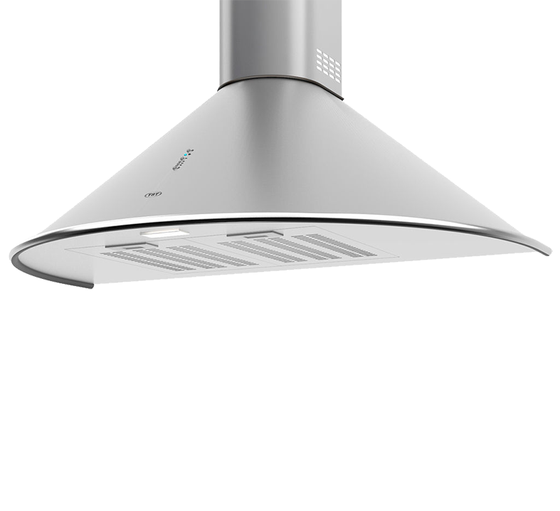 Campana circular con acabado en acero inoxidable para montaje en pared / Modelo de 60cm / Motor interno de 6 pulgadas con un caudal de 800m3/h con salida libre / Comando digital / 3 velocidades / Luz / Filtro metálico lavable / Permite instalación sin salida al exterior.