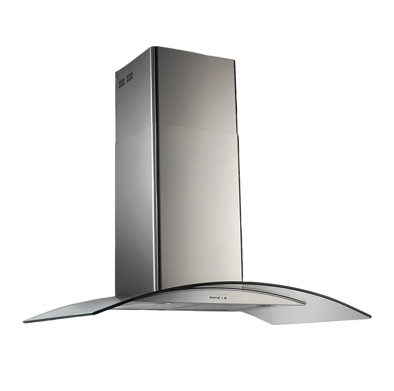 Campana curva con acabado en acero inoxidable esmerilado y vidrio para montaje en pared / Modelo de 60cm / Motor interno de 6 pulgadas con un caudal de 800m3/h con salida libre / 3 velocidades con temporizador / Luz led / Filtro metálico lavable / Permite instalación sin salida al exterior.