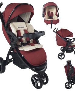 Coche de paseo con huevito / Chasis de aluminio / Arnés de 5 puntos / Respaldo reclinable en 3 posiciones / Bandeja con posa-vaso / Apoyapiés regulable / Capota de 3 gajos / Barral frontal desmontable / Bolsón porta objetos / Huevito de 0 a 13kg con acolchado reductor y cinturón de 3 puntos.