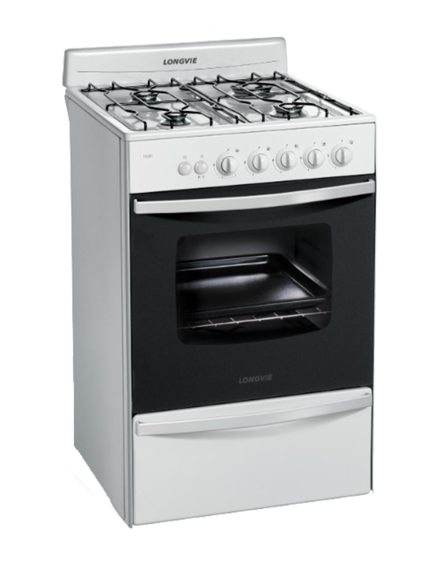 Multigas / 4 quemadores / Puerta doble vidrio templado / Valvula de seguridad en horno y hornallas / Horno QuickClean / Rejas de hierro fundido / Plancha enlozada / Encendido electrico independiente / Luz en horno / Cajon parrillero / Medidas: 56 x 85 x 58cm / Blanca.