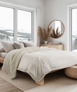 Edredón de coral flece con reverso de corderito / Medidas: 2.80×2.50 / Color liso.