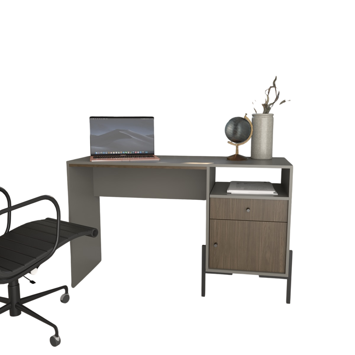 ESCRITORIO 4255 GRIS CUBANITA COMBINADO CON NOGAL TABLES