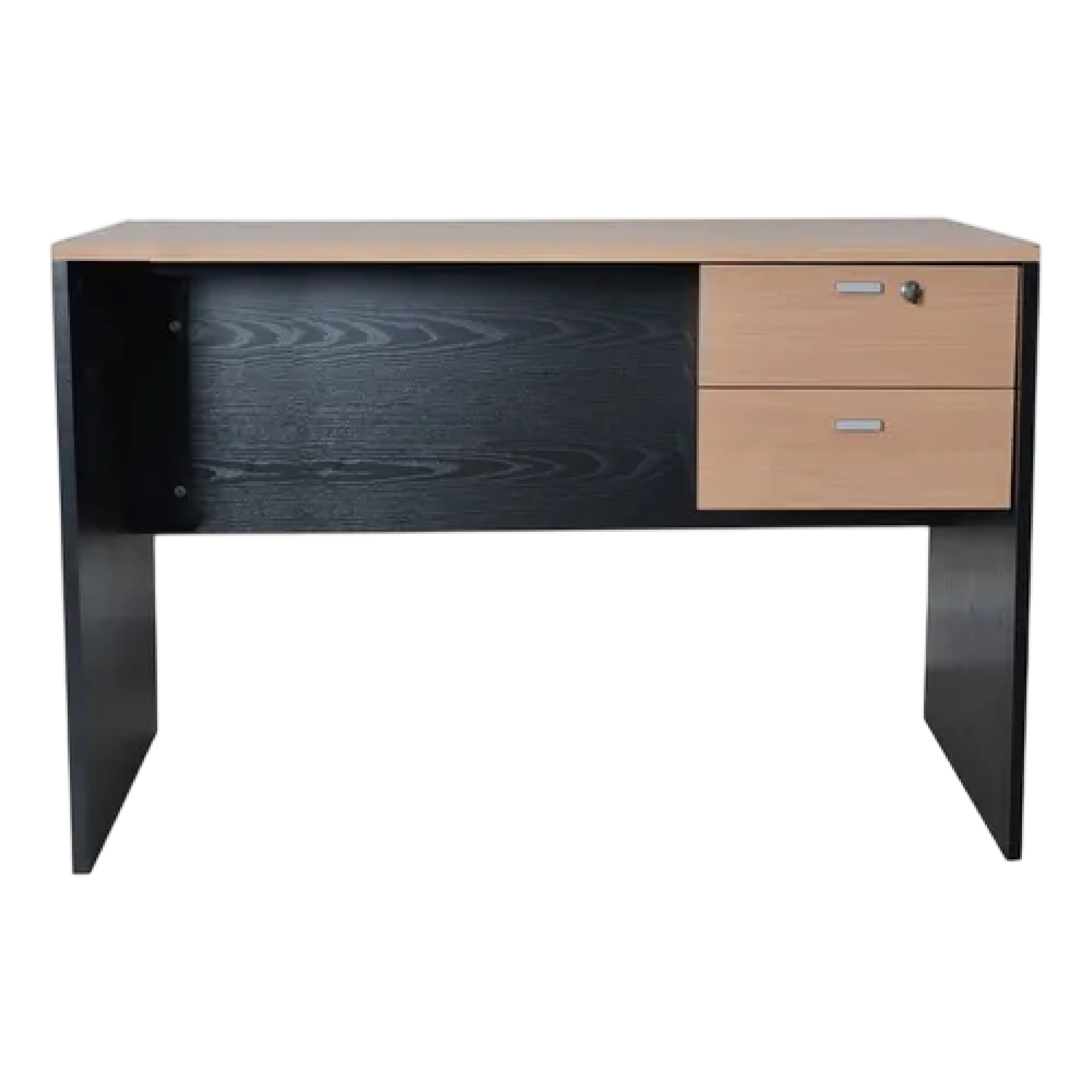 Fabricado en melamina color negro combinado con haya / 2 cajones (superior con cerradura) / Correderas metálicas / Cajonera adaptable / Medidas: 1.00 de ancho x 0.60 de profundidad x 0.74 de alto.