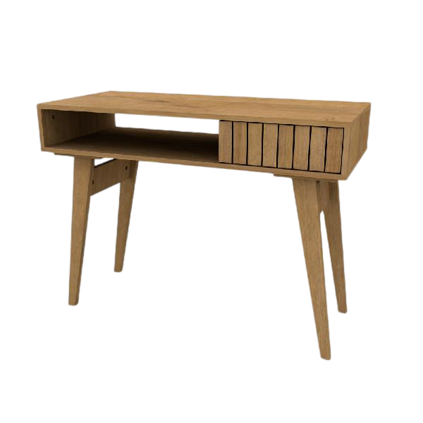 Escritorio moderno y funcional / 1 cajon y 1 estante / Patas macizas / Medidas: 100x45x75cm / Color: roble miel.
