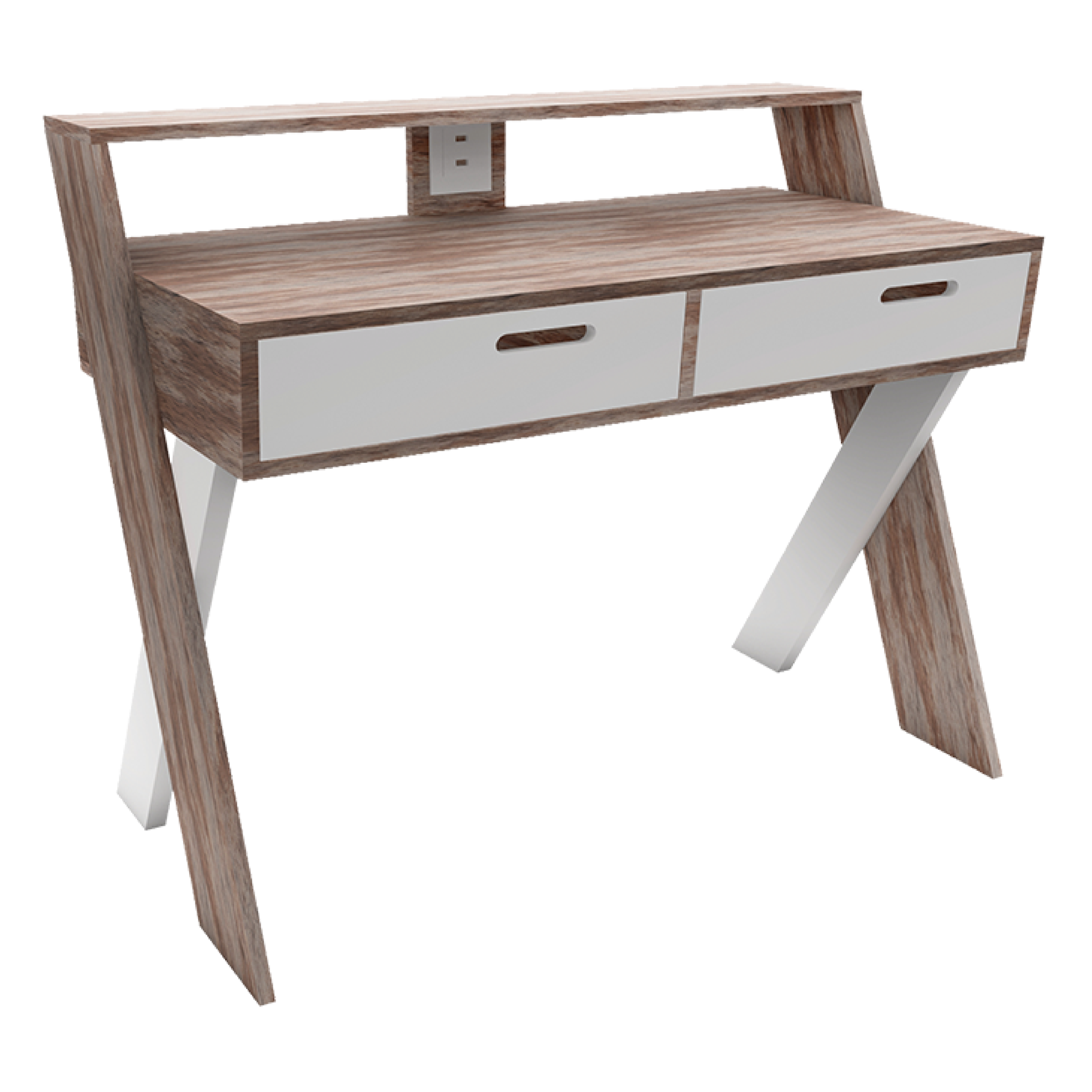 Fabricado en melamina texturada valiant en color atakama combinado con MDF laqueado semimate / 2 cajones / Estante / Con puertos USB / Medidas: 1.20×0.60.