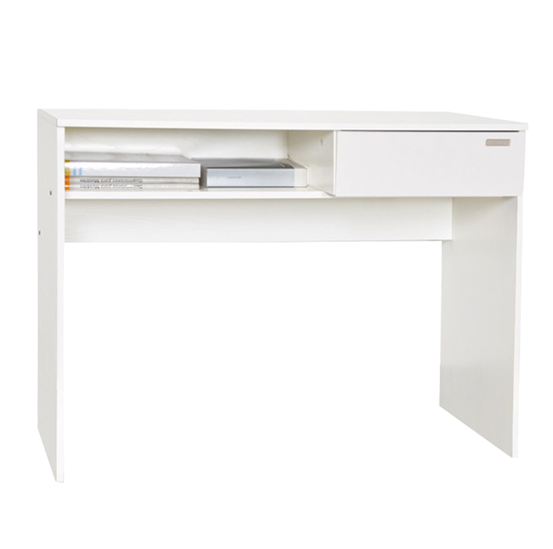 Fabricado en melamina color blanco / 1 cajón y 1 estante / Medidas: 1.00 de ancho x 0.45 de profundidad x 0.75 de alto.