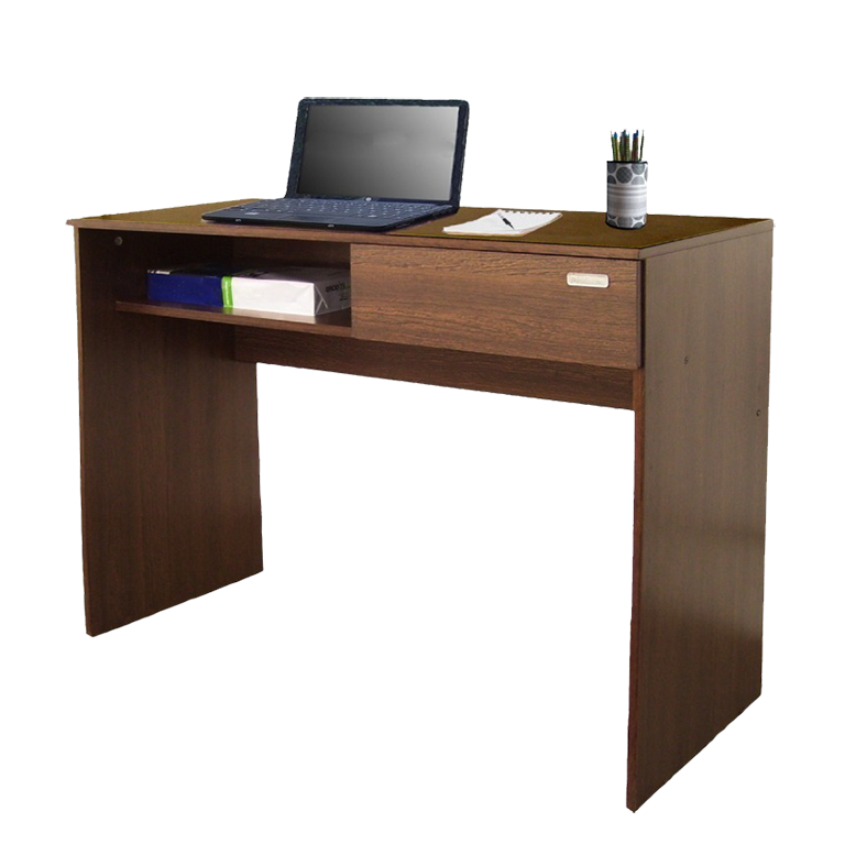 Fabricado en melamina color tabaco / 1 cajón y 1 estante / Medidas: 1.00 de ancho x 0.45 de profundidad x 0.75 de alto.