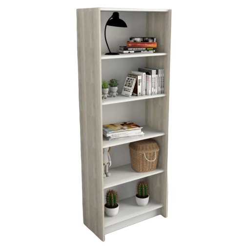 Fabricada en melamina color nevado combinado con everest / 5 estantes / Sistema Minifix / Medidas: 0.70×1.80×0.34.
