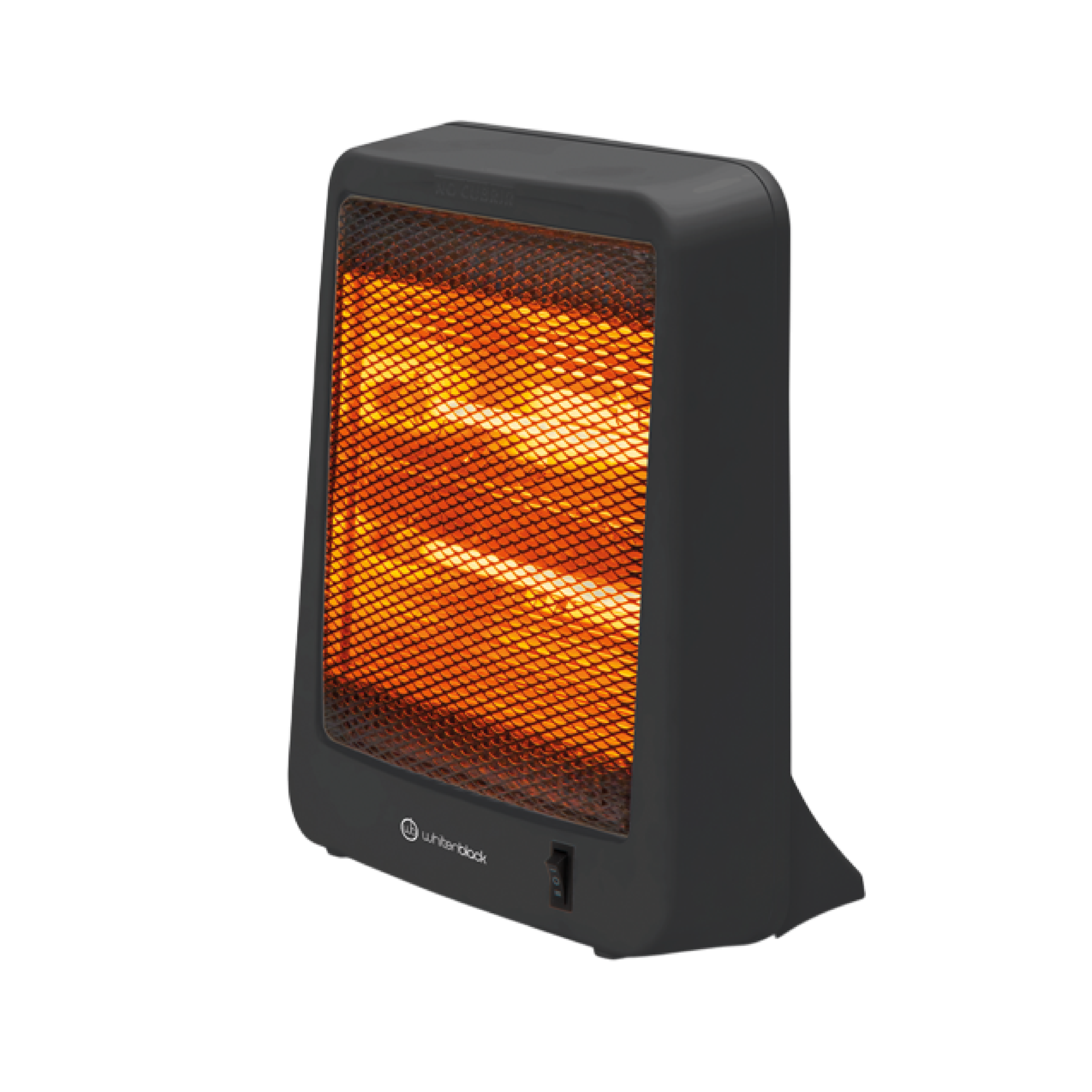 Amplia radiación frontal / Frente mallado / 2 tubos de cuarzo / Potencia: 500-1.000W / Iluminación atenuada / Corte por caída / Diseño compacto / Patas desmontables.