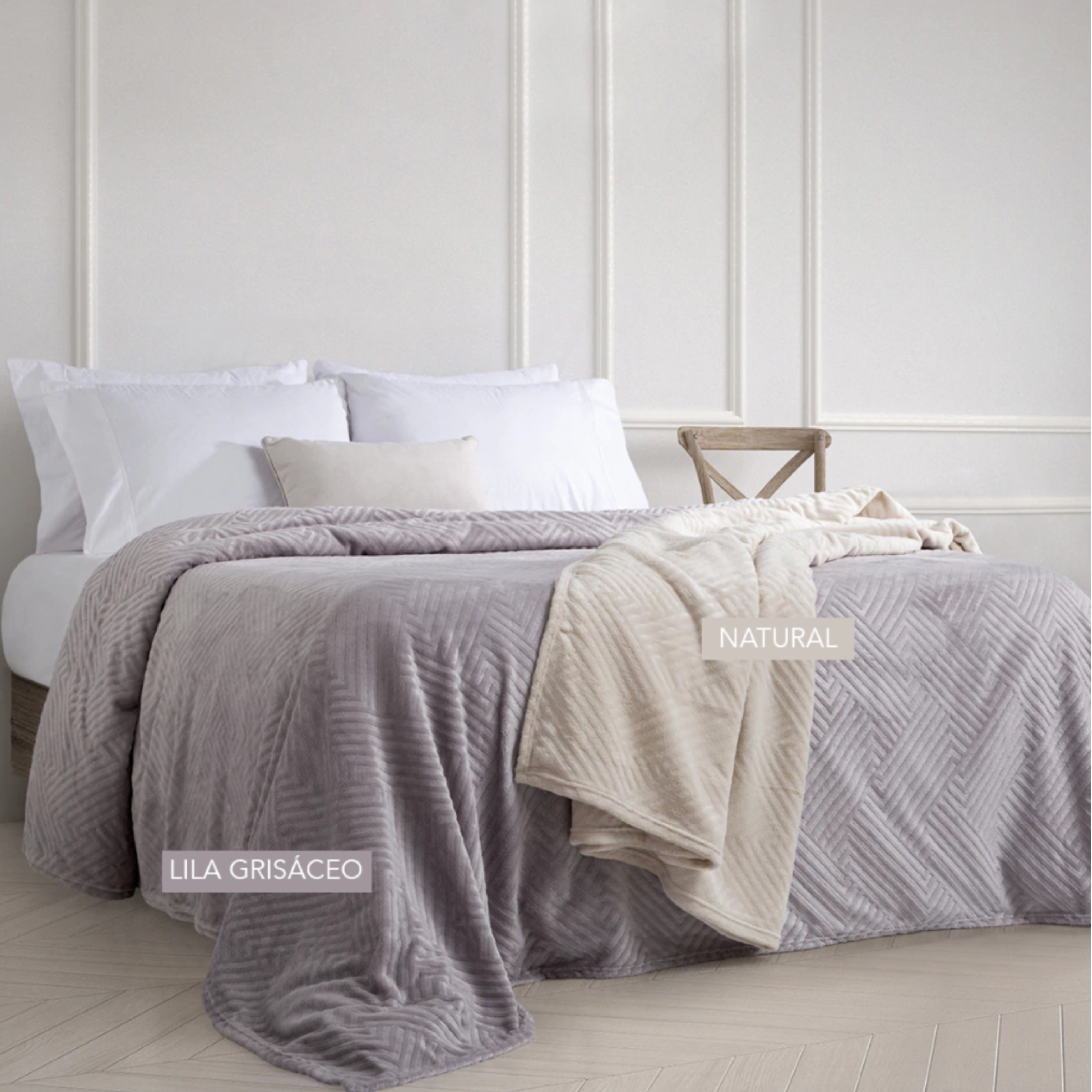 Frazada liviana de flannel fleece emboss / Para colchón de hasta 1.40×1.90mt / Medidas: 2.20×2.40mt / Colores lisos.