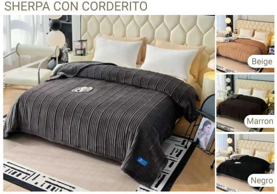 Frazada sherpa de flanel rayado con reverso de corderito / Para colchón de hasta 2.00×2.00 / Medidas: 2.40×2.60.