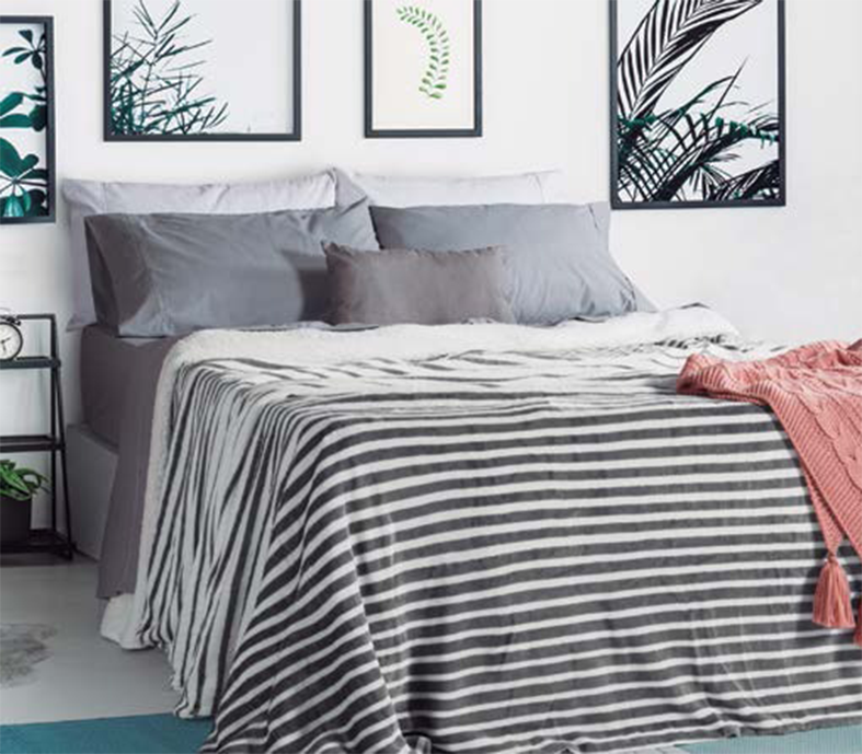 Para cama de hasta 2.00mt / Microflannel estampado combinado con corderito / Medidas: 2.70×2.40 / Varios colores.