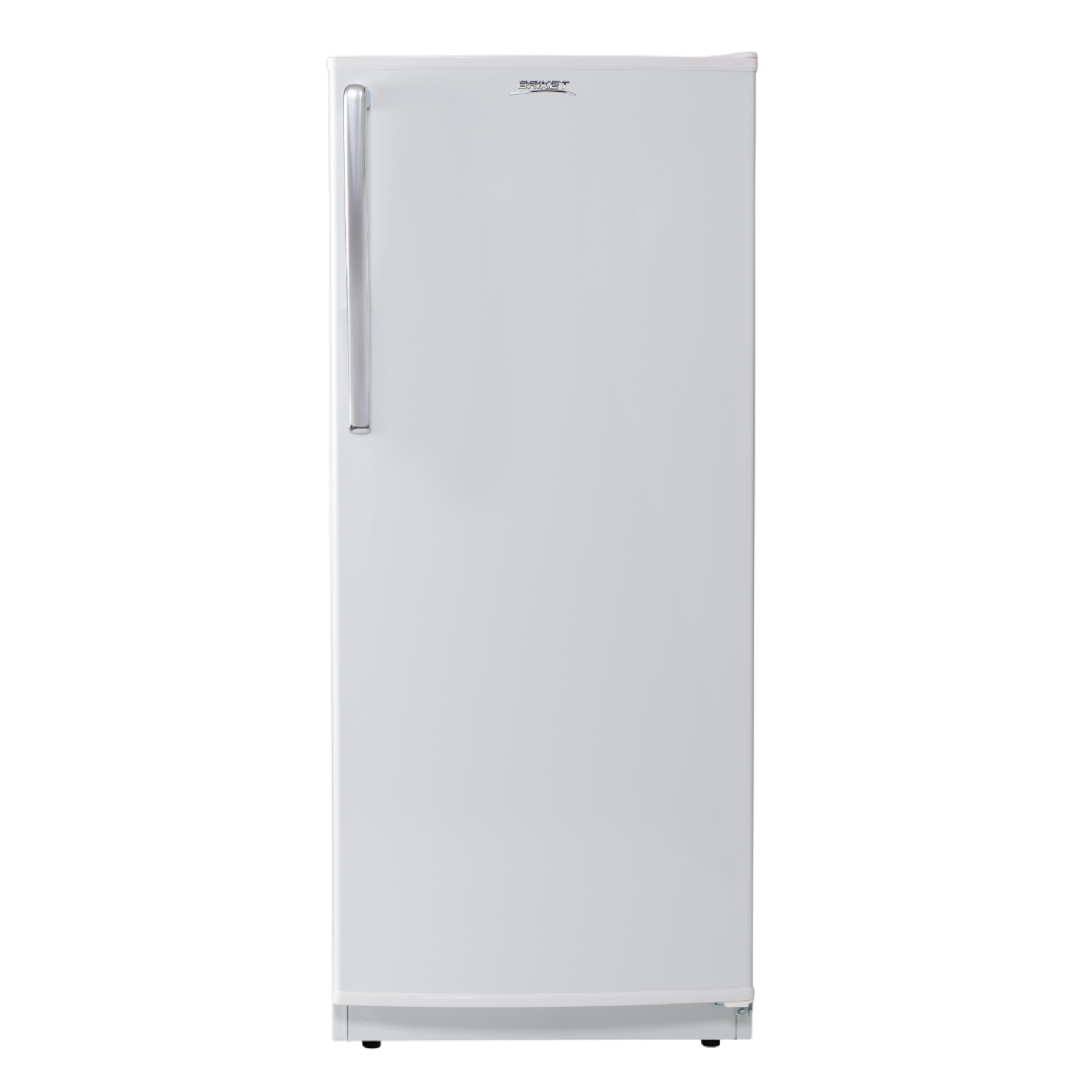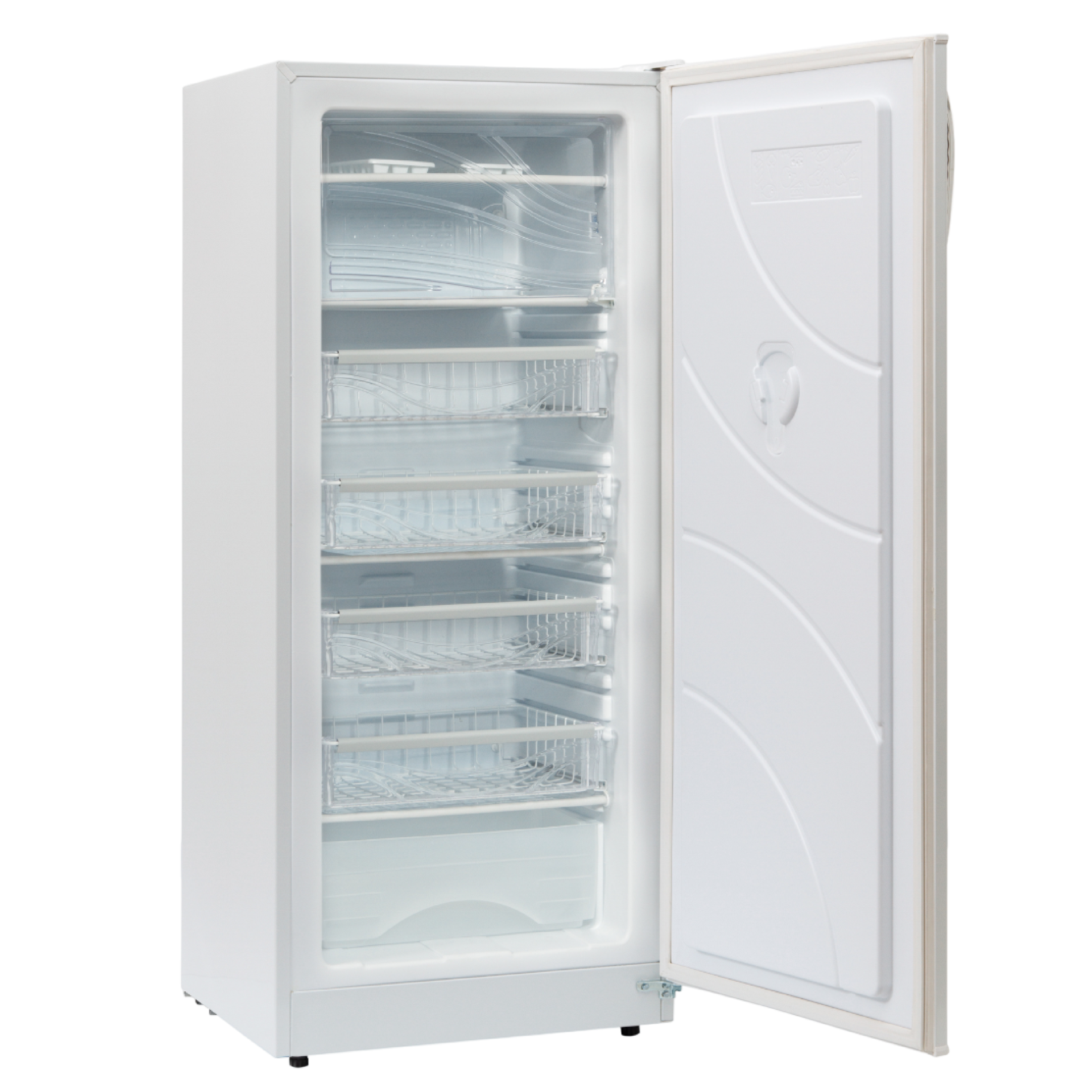 Freezer vertical cíclico / 235 litros / Eficiencia clase A / Refrigerante ecológico R600a / Termostato regulable / 6 compartimientos / Medidas: 149,3cm de alto x 62,6cm de ancho x 66cm de profundidad / Blanco.