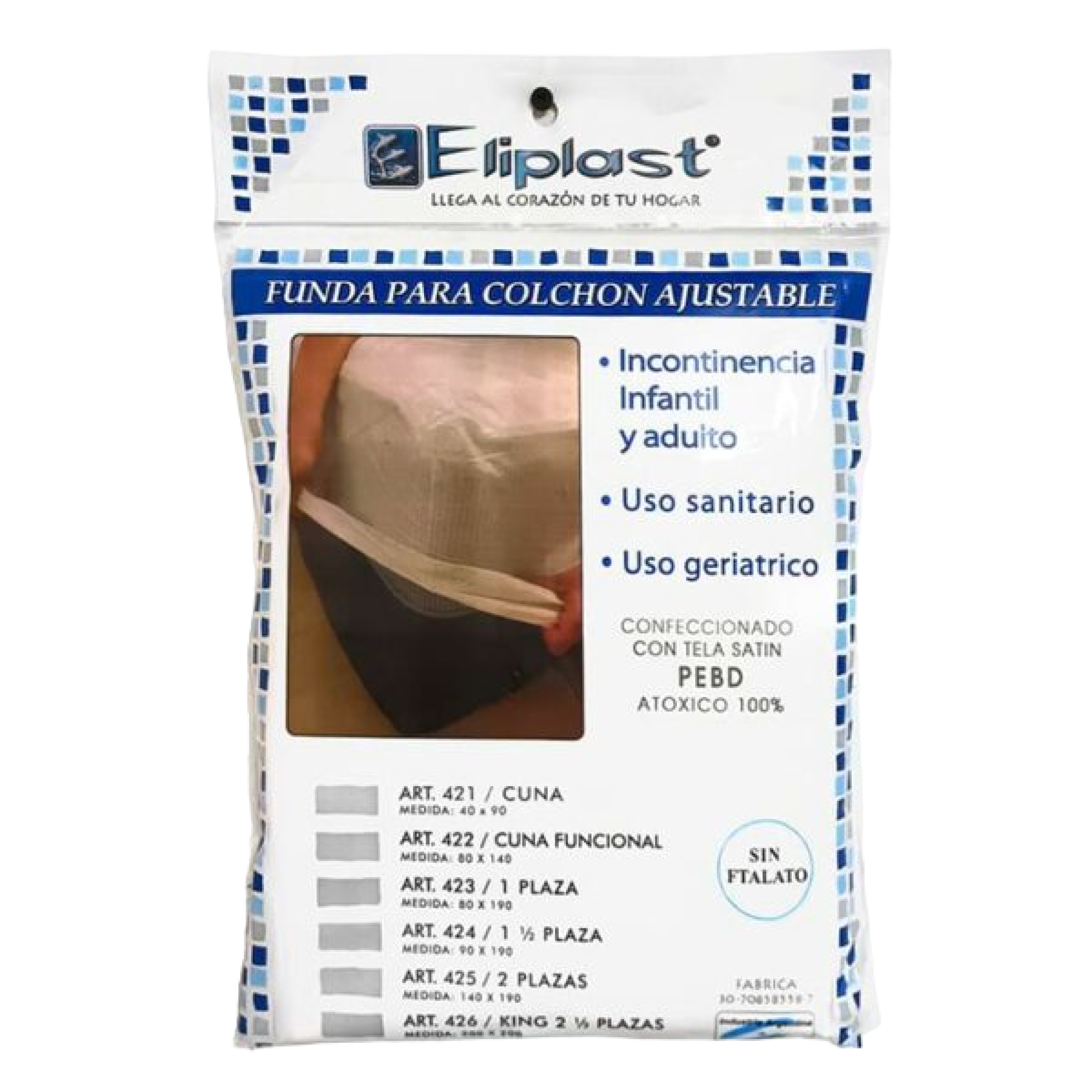 Funda para incontinencia de PVC de alta resistencia / Para colchón de hasta 90x195x20 / 100% impermeable / lavable con agua y jabón / Ajustable.