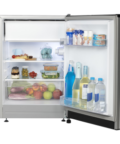 Heladera bajo mesada con congelador / Sistema de frío cíclico / Eficiencia A / Gas R600A / Capacidad bruta 120lts / Estantes de vidrio templado / Cajón para frutas y verduras / Medidas: 82cm de alto x 55cm de ancho x 69cm de profundidad / Gris Aluminum.