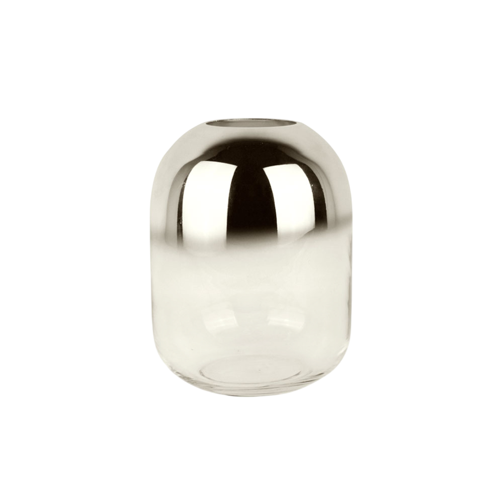 Jarrón de vidrio / Estilo moderno y sofisticado / Degradé en plata / Medidas: 13.5×17.5cm.