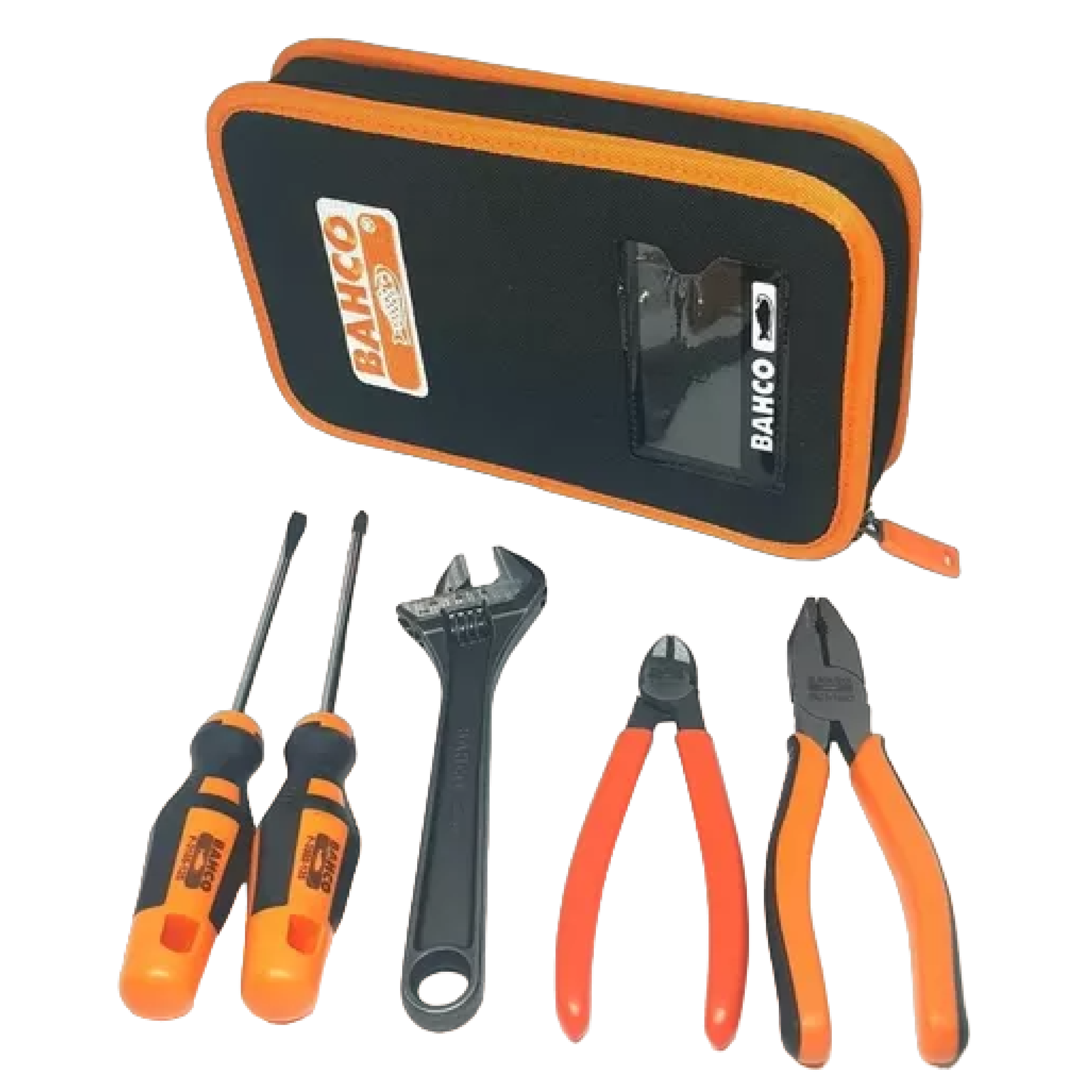 Set para automovil / 5 Piezas / Incluye: Estuche, 1 destornillador plano, 1 destornillador philips, 1 pinza standard , 1 alicate y 1 llave francesa.