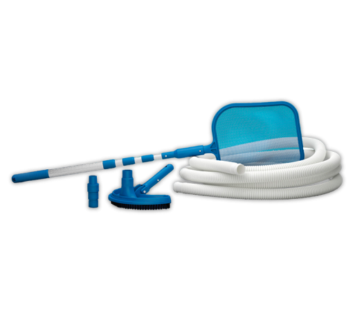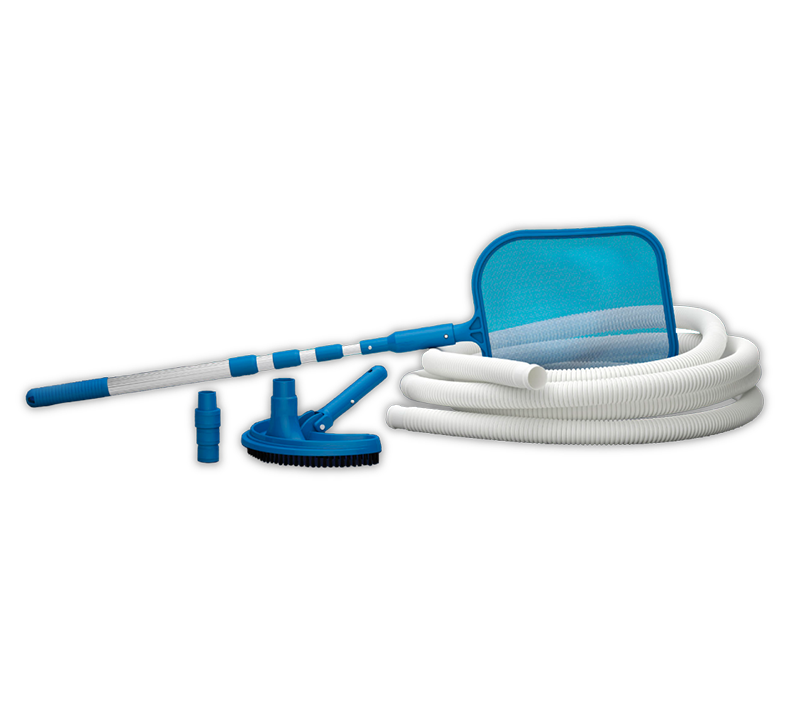 Incluye 1 barral extensible de aluminio de 1,60 mts, 1 barrefondo, 1 sacahojas, manguera de 6mts y adaptador para filtro.