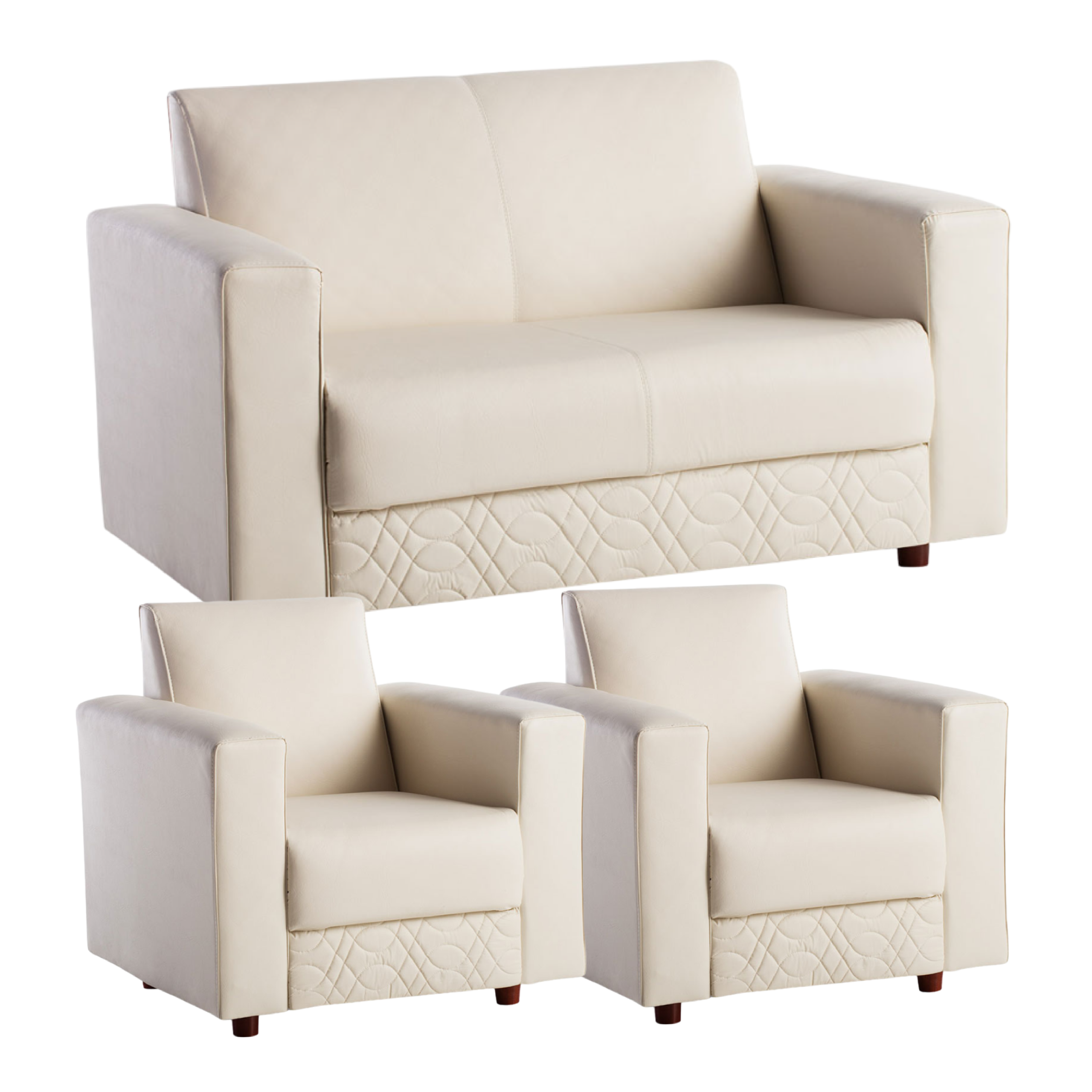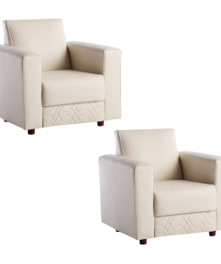 Estructura de madera libre de nudos / Placas de espuma de poliuretano soft densidad 20 kg/m3 / Sistema Confort Foam Laminated / Tapizadoo en cuero ecologico Non clip / Pespunte y costura doble / Medida sofa 2 cuerpos: 1.32×0.73×0.81mt / Medida sofa 1 cuerpo: 0.81×0.73×0.81 mt / Color natural.