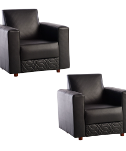 Estructura de madera libre de nudos / Placas de espuma de poliuretano soft densidad 20 kg/m3 / Sistema Confort Foam Laminated / Tapizadoo en cuero ecologico Non clip / Pespunte y costura doble / Medida sofa 2 cuerpos: 1.32×0.73×0.81mt / Medida sofa 1 cuerpo: 0.81×0.73×0.81 mt / Color negro.