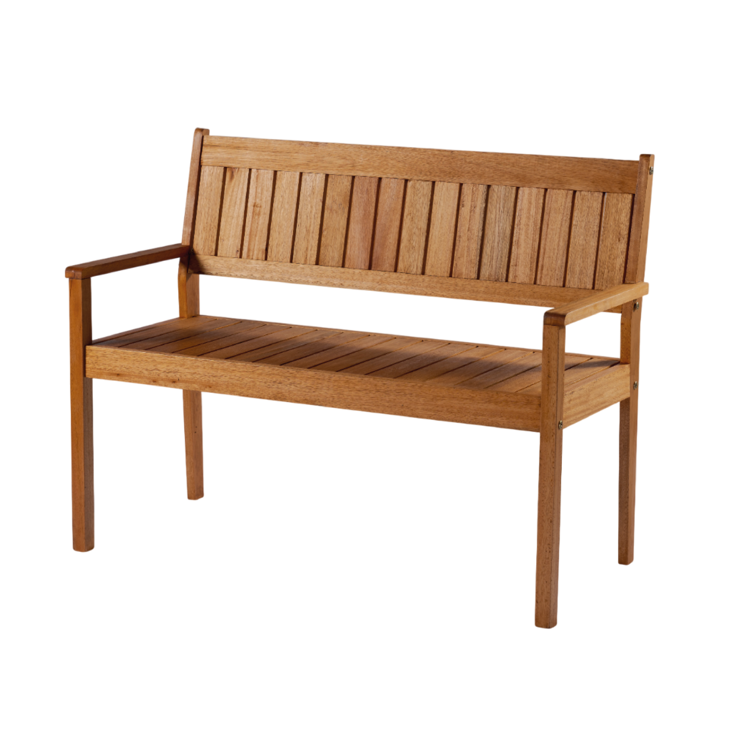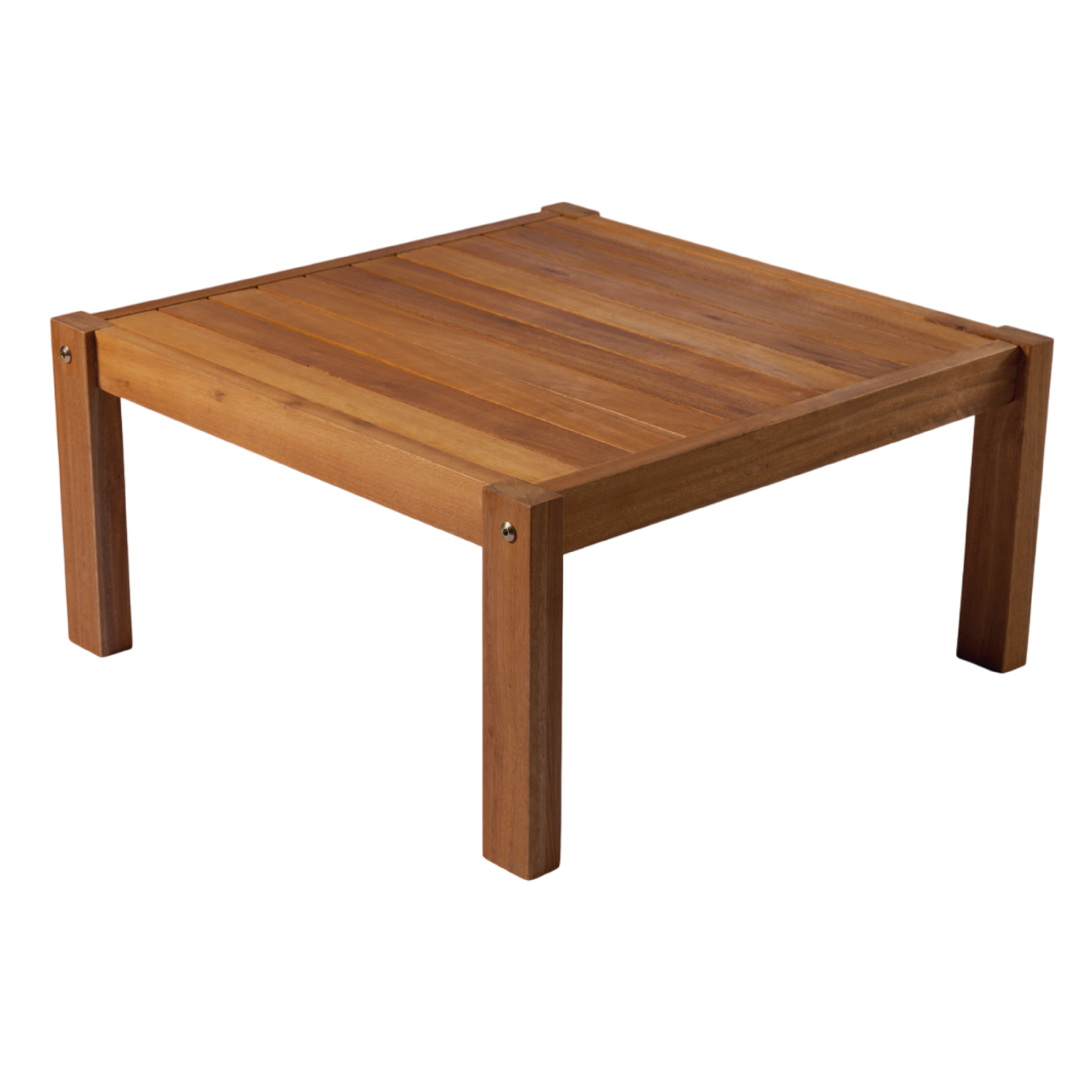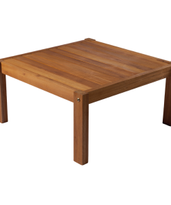 Fabricado en madera Grandis certificada FSC con terminación en impregnante color nogal / Formado por 1 sillón doble de 1.25×0.48×0.95, 2 sillones simples de 0.56×0.44×0.95 y 1 mesa ratona.