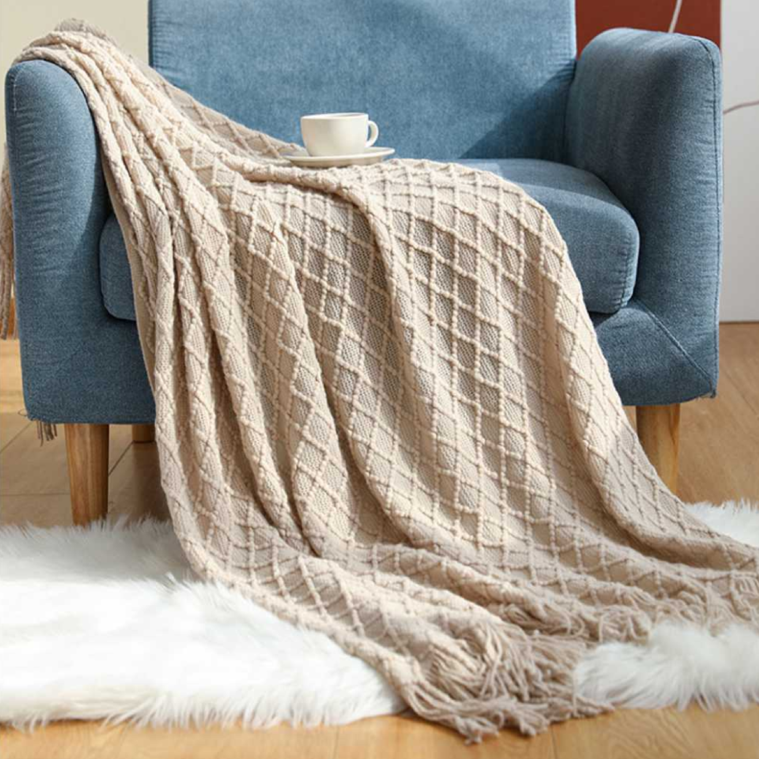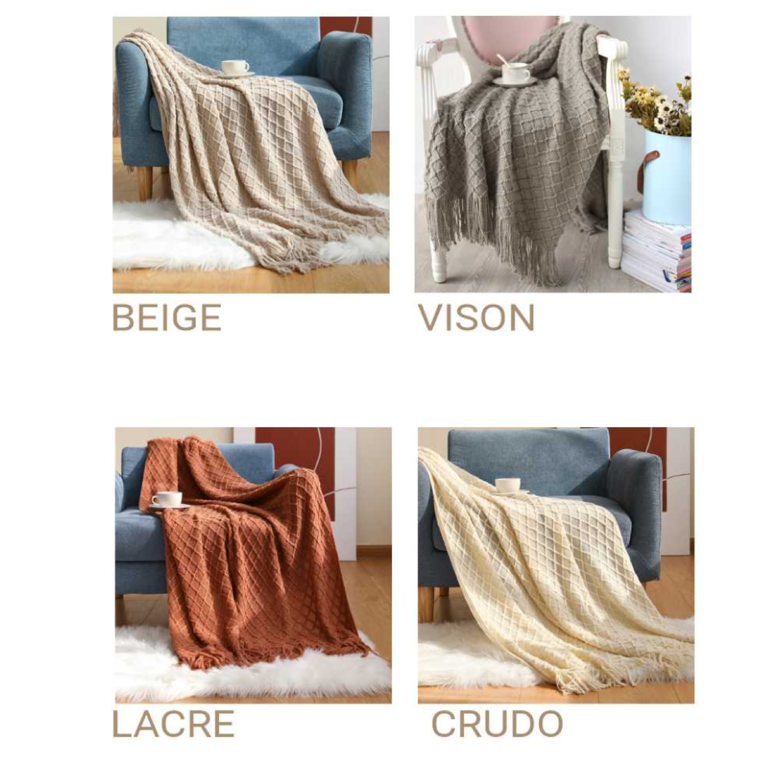 Manta tejida / Diseño rombos / Medidas: 1.30×1.70 / Para pie de cama o decorar el sillón.