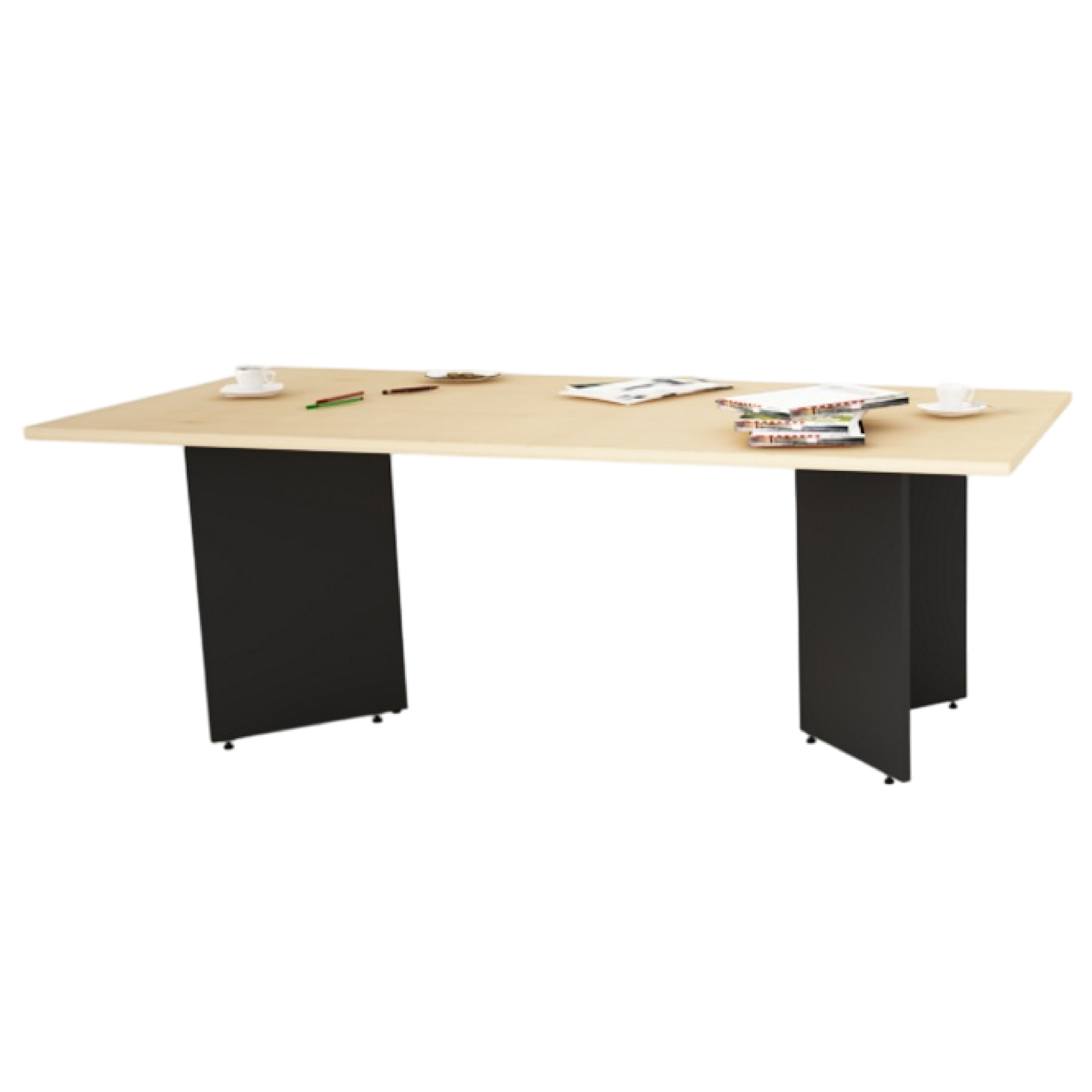 Fabricada en melamina 18 y 25mm / Capacidad hasta 6 personas / Medidas: 1.90 de ancho x 0.90 de profundidad x 0.79 de alto / Color negro combinado con haya.