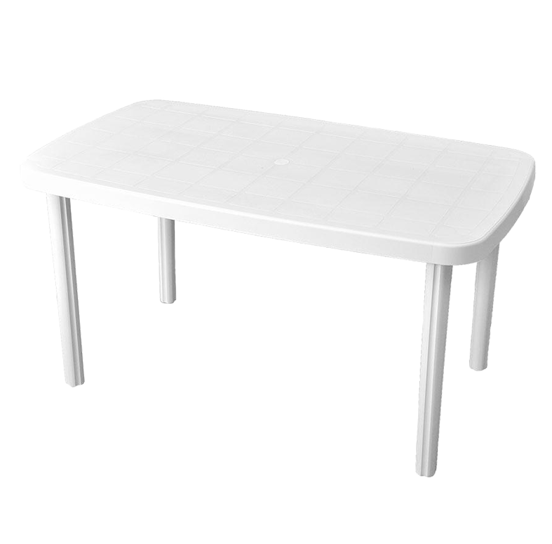 Mesa rectangular con patas desmontables / Fabricada en polipropileno / Tecnología Duramax / Resistencia UV / Medidas: 140 x 80 x 70 / Color blanca.