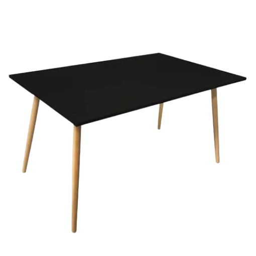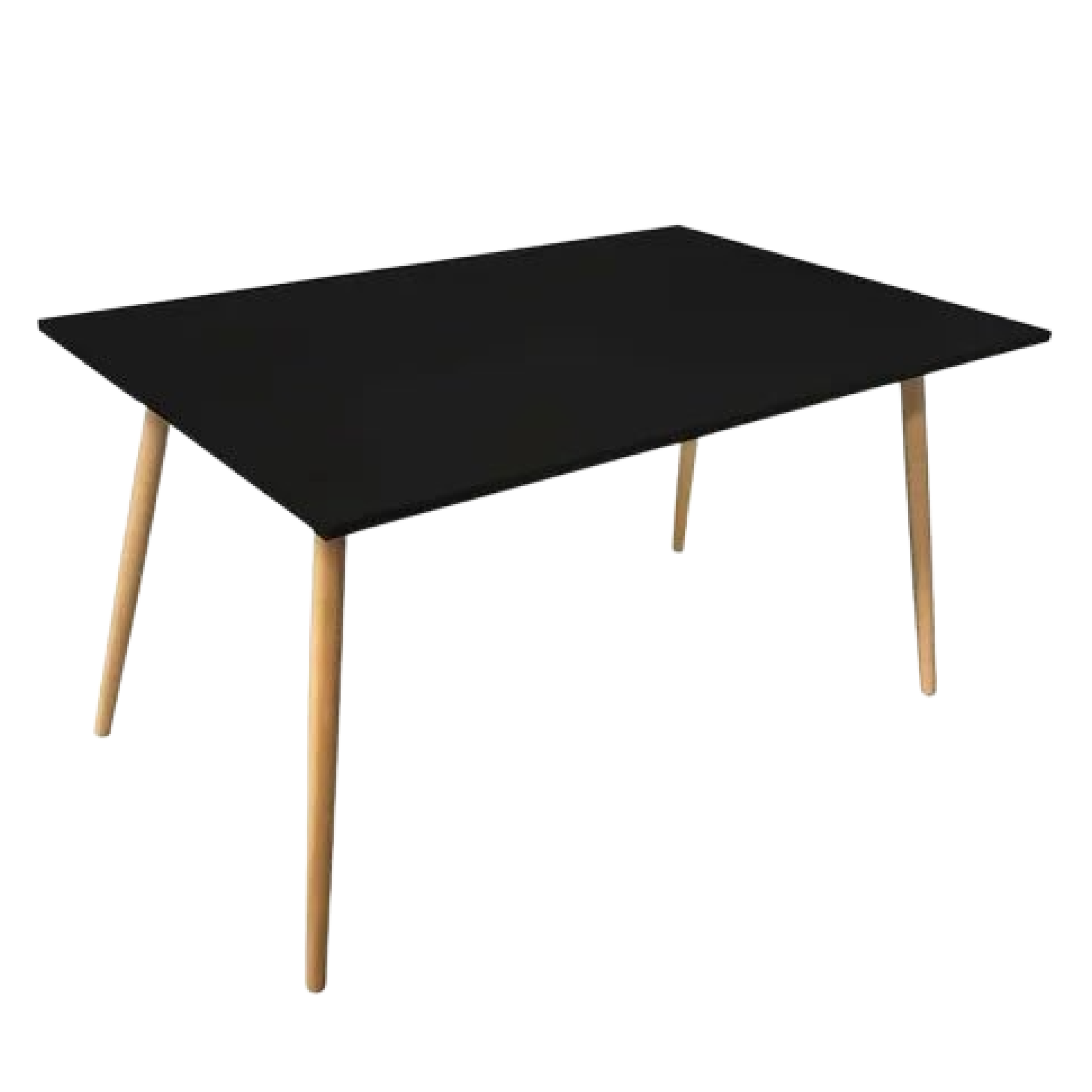 Mesa estilo nórdico / Tapa en melamina 18mm color negra con patas de madera lustre natural / Medidas: 1.20×0.82×0.76.