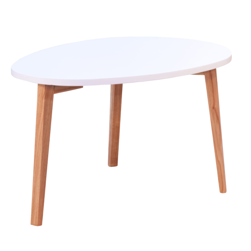 Tapa ovalada laqueada blanco con patas paraiso / Estilo nórdico / Medidas: 0.60×0.90×0.40.