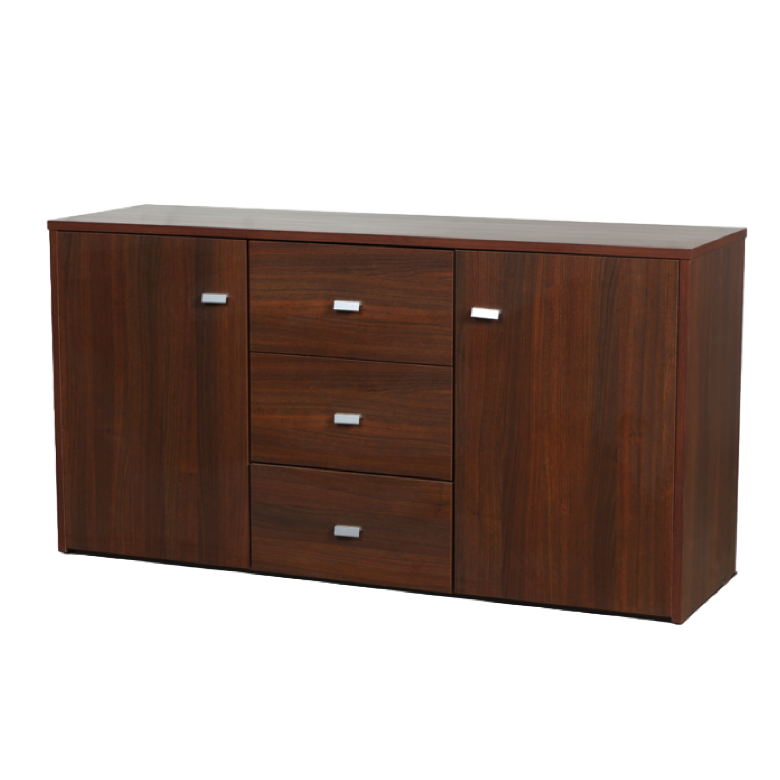 Fabricado en melamina / 3 Cajones / 2 Puertas de abrir / Color: Cherry Malaga / Medidas: 1.35 de ancho x 0.68 de alto x 0.40 de profundidad.