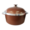 Olla con asas de material de aluminio / Con tapa / Revestida exteriormente por esmalte Epoxi poliester / Facil limpieza, inalterable al fuego / Capacidad: 14Lts. / Medida: 33cm de diametro superior y 23cm de diametro inferior x 33 cm. de alto.