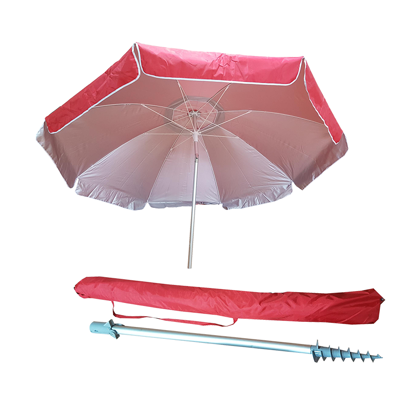 Tela poliester con protección UV / Reclinable / Con broca / 8 varillas / Aluminio / Medidas: 2.20mts.