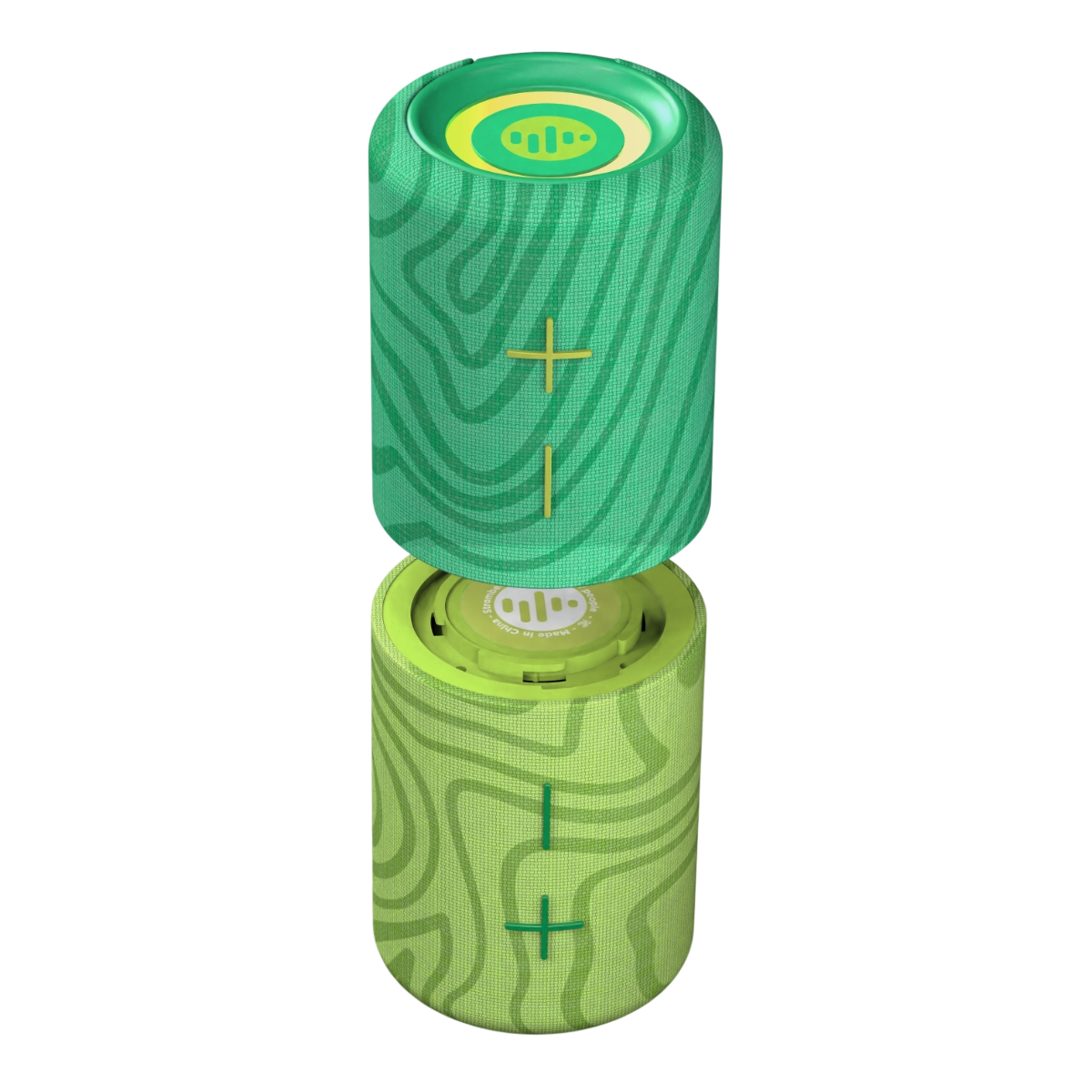 20W de potencia / Diseño 2 en 1: permite usarlo unido o separado / 2 subwoofers de 3 pulgadas / Conexión bluetooth / 11hs de autonomía / Luces RGB.