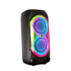 80W de potencia / 2 woofers de 8 pulgadas y 1 tweeter de 3 pulgadas / Luces Led RGB audiorrítmicas / 6hs de autonomía / Entrada AUX y micrófono / Función Stromberg Connect.