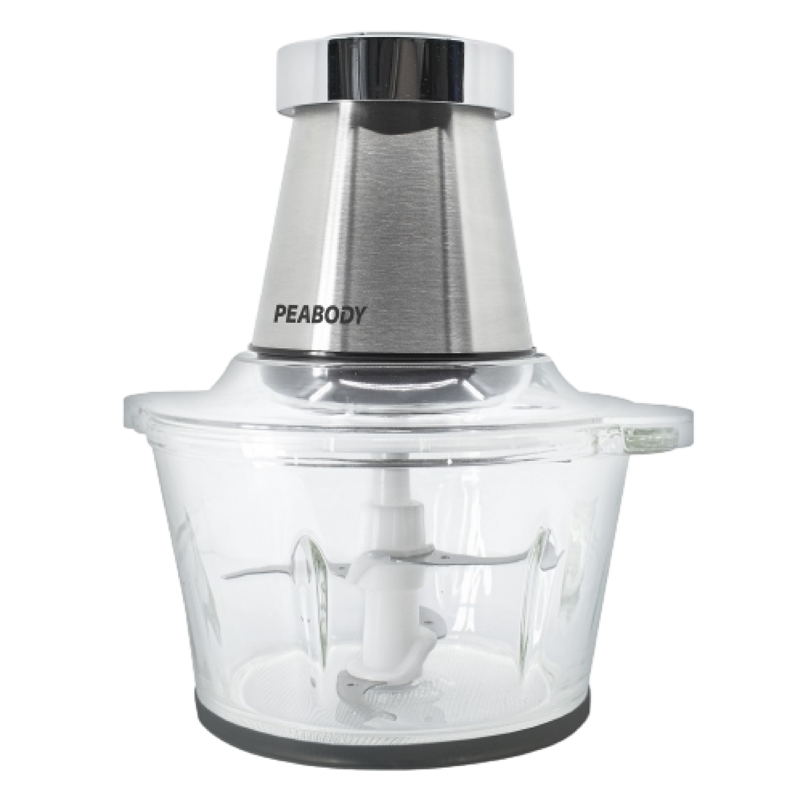 350 watts de potencia / Bowl de vidrio con manija de 2lts de capacidad / Pulsador de 2 velocidades / Doble cuchilla desmontable de acero inoxidable / Base de silicona antideslizante.